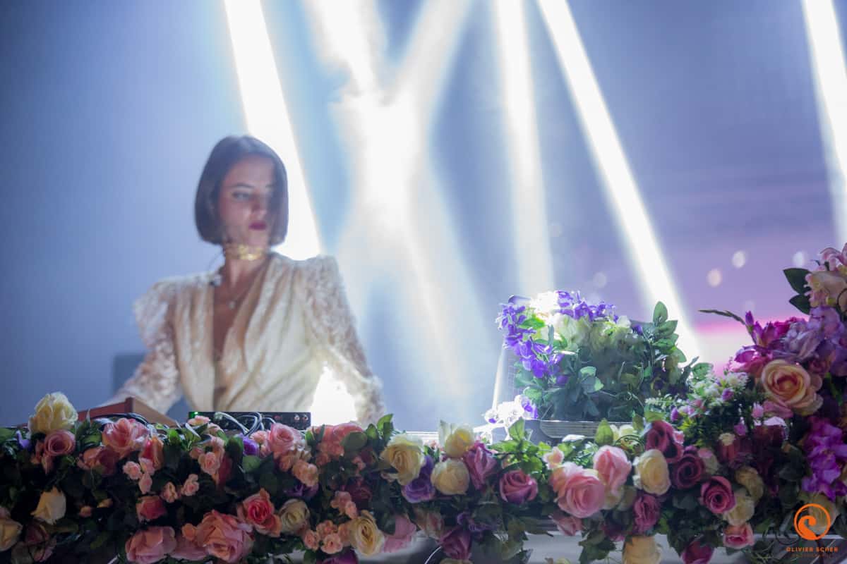 Irène Drésel : Et bon je me suis dit, je veux faire du son techno mais je veux rester qui je suis naturellement et proposer ce que j’aime. En tout cas c’est comme ça que je vois les choses et très très vite ça s’est fait comme ça et finalement c’est devenu mon image. La première fois où on a mis des fleurs je ne me suis pas dit que ce serait mon identité pour toute la vie, juste j’avais envie de mettre des fleurs sur scène. Maintenant ça a pris et on veut en mettre plus.