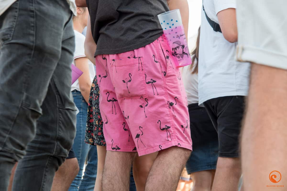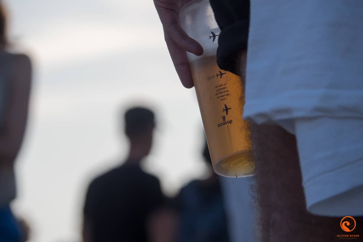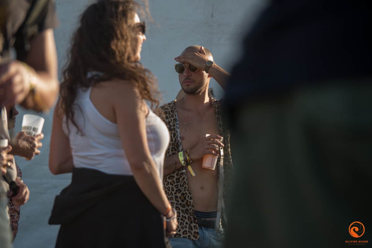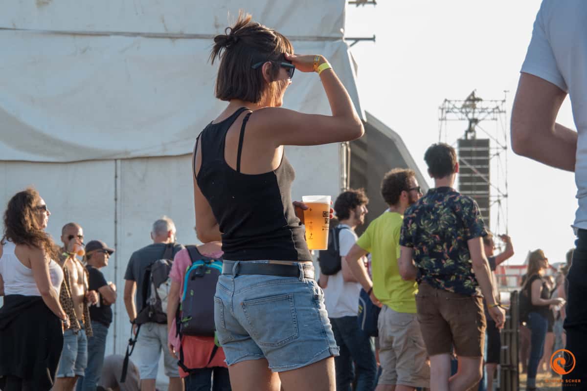 Ensuite, un tour rapide sur le site nous permet de constater que si l’offre classique de boisson est bien présente (Kro et compagnie à des tarifs super raisonnables, demi à 2,50 €), un bar de bières et vins locaux est également dispo. Ceci est un super bon point, nous ne nous ravitaillerons qu’à ce bar du coup. Tout autour l’offre de nourriture est aussi variée et locale. Enfin, 3 scènes sont installées sur un site où l’on circule très facilement.