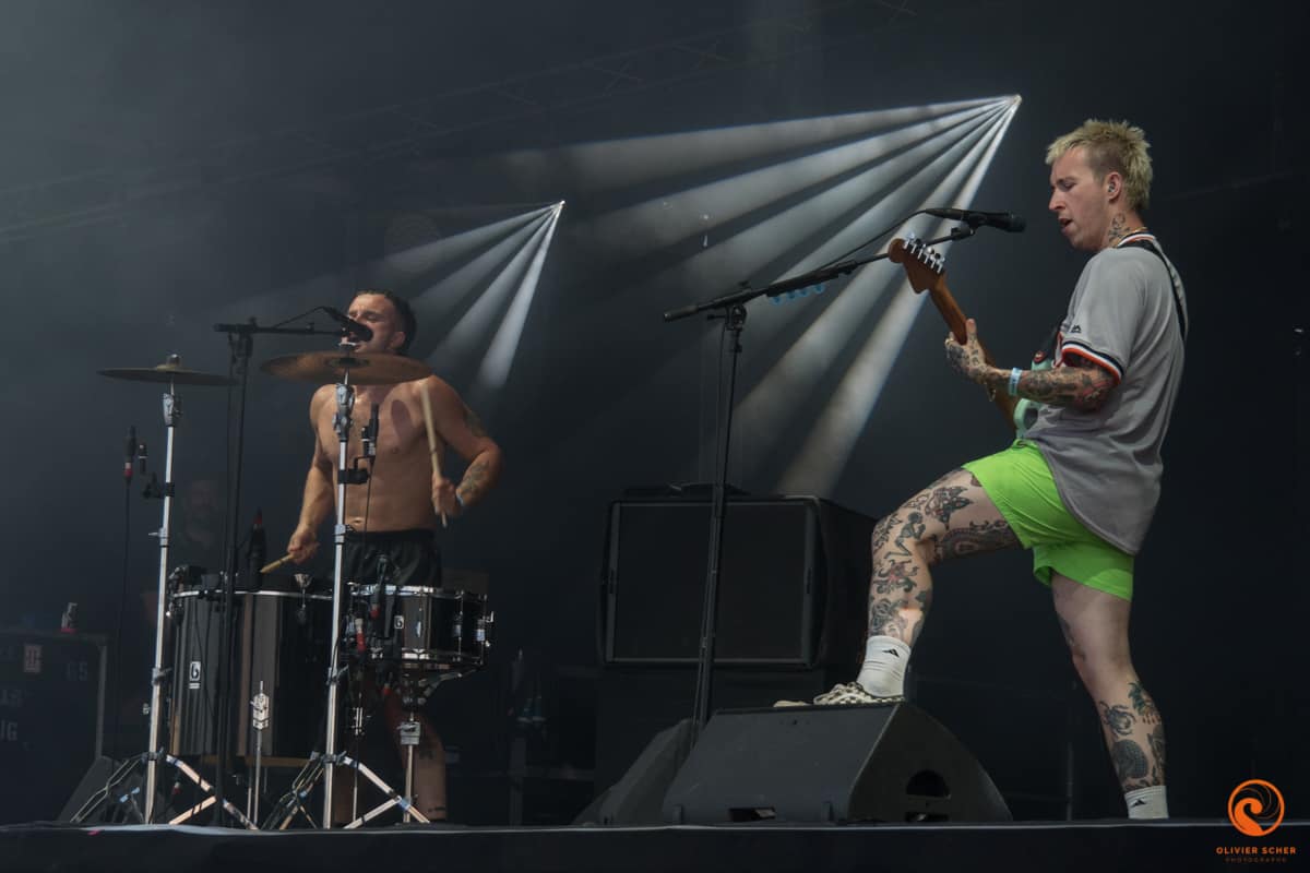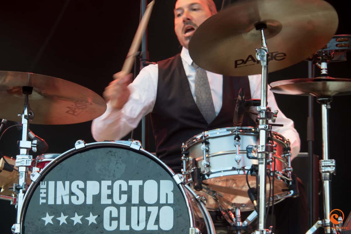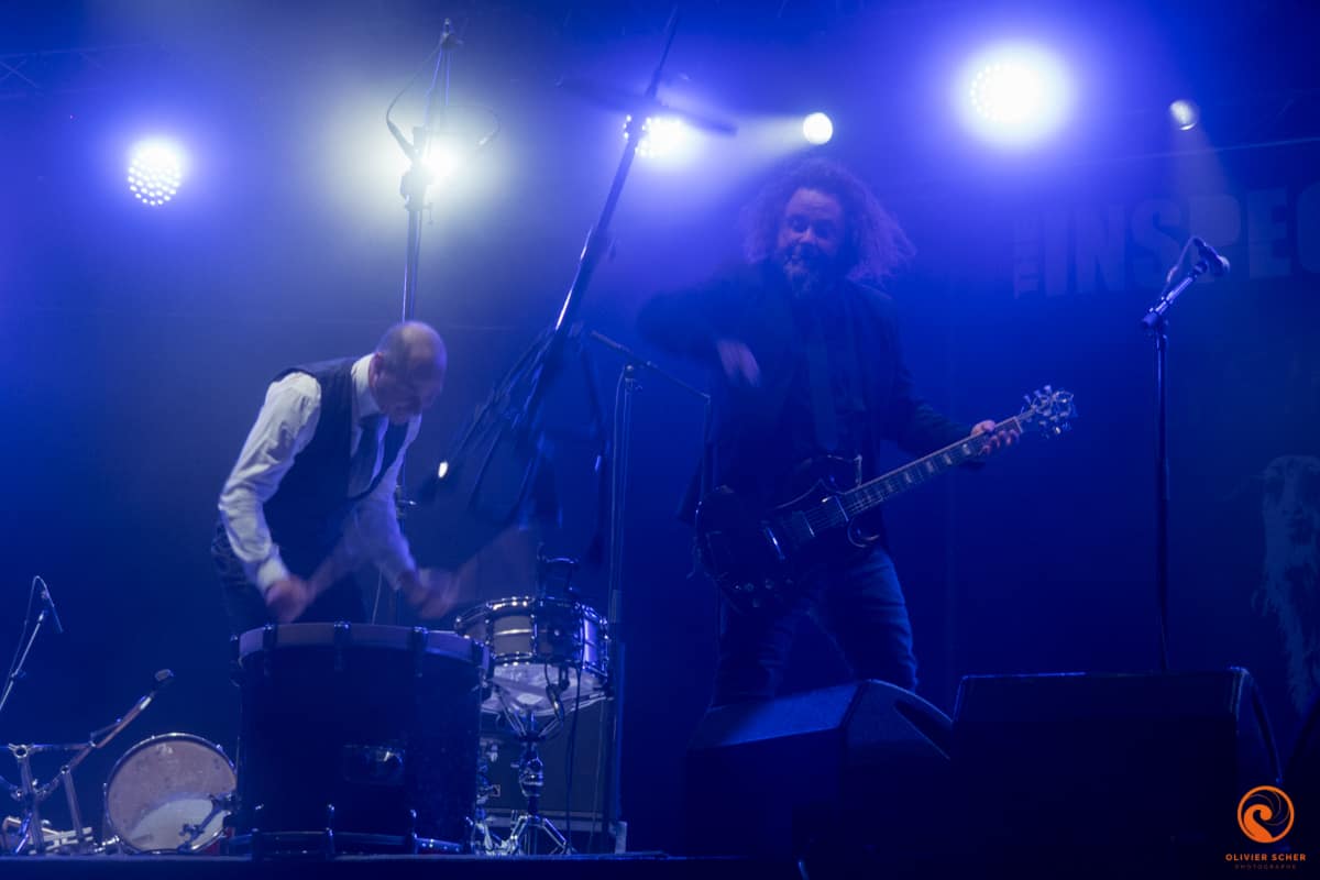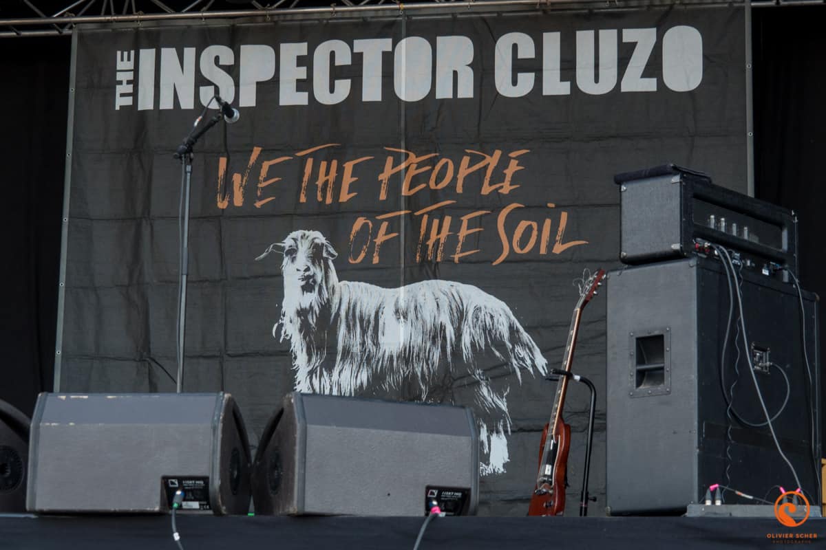 C’est Slaves qui enchaine dans un style très débridé. Ce duo de punk anglais assure le show sans plus (heure précoce pour ce genre de zik). D’ailleurs l’autre duo qui enchaine, The Inspector Cluzo, en profite pour tacler les anglais en expliquant que si on veut chanter comme eux il faut boire de la bière toute la journée alors que pour faire de la vraie musique, faut se mettre à l’Armagnac ! Les deux agriculteurs rockeurs assurent le show et finissent comme à leur habitude en jetant les différents éléments de la batterie en bas de la scène (assez haute pour le coup).