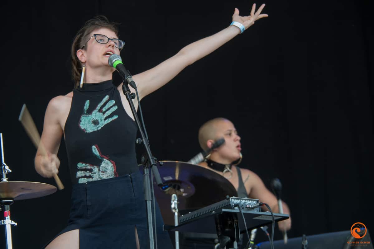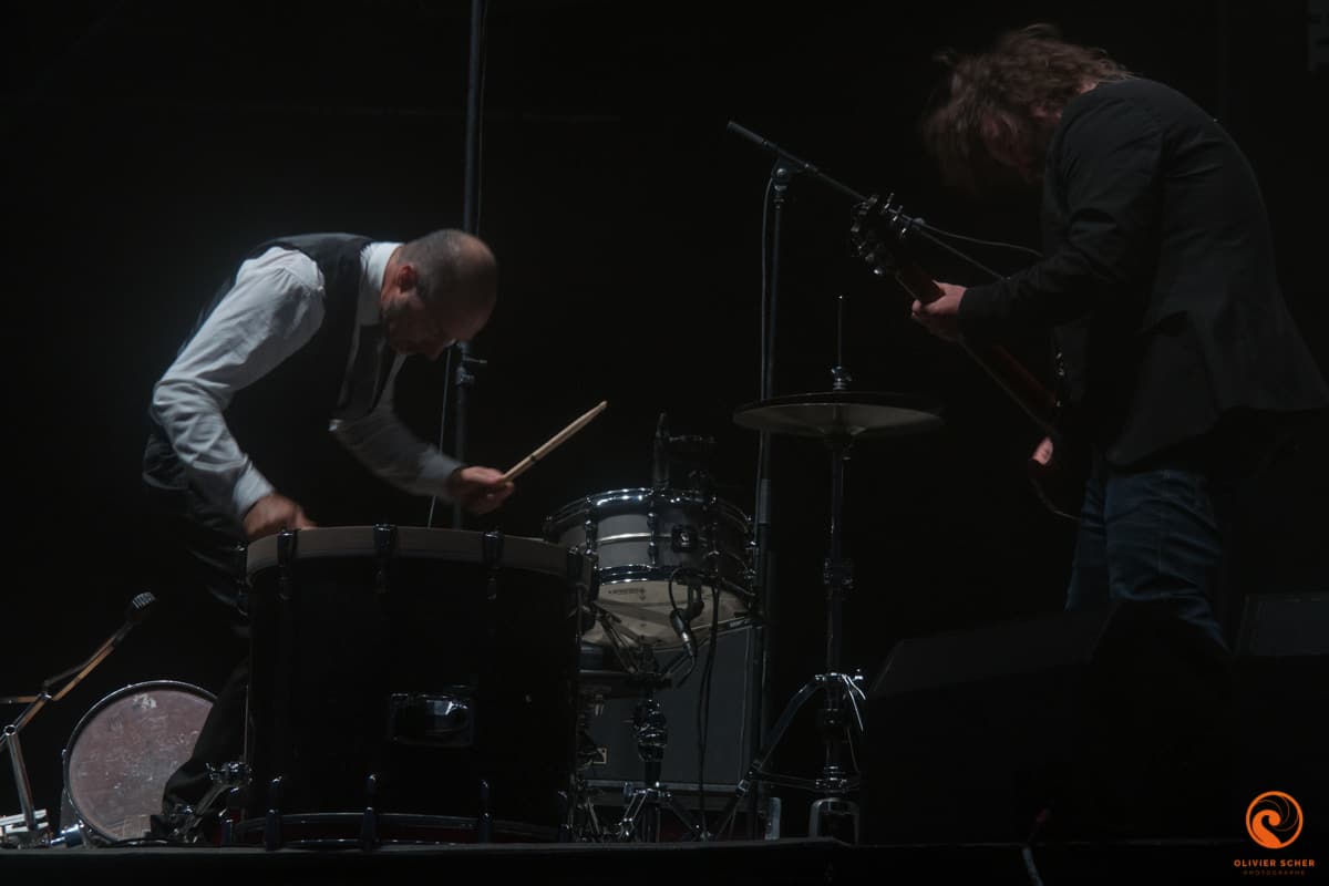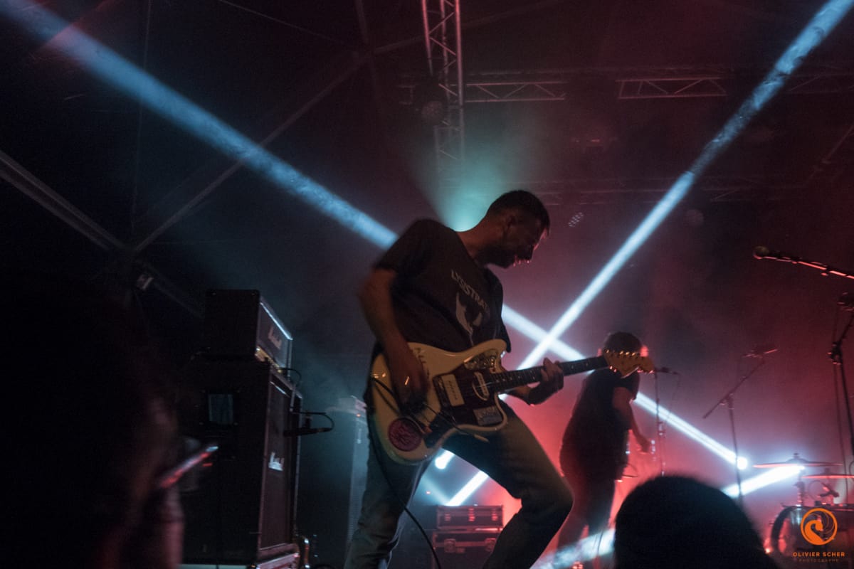 Autant les journées sont très chaudes en cette fin d’été en Creuse, autant les soirée y sont très froides… Retour sur le tarmac de Guéret pour attaquer tranquillement avec Namdose (fusion de Ropoporose et BRNS) qui joue au centre du public. Peu de titres entendus avant de filer écouter Puts Marie. Ce groupe suisse possède vraiment un truc qui accroche, ne serait-ce que par l’attitude lunaire de son leader. En tout cas, ça marche, c’est incarné et on recommande l’écoute de leur dernier album.