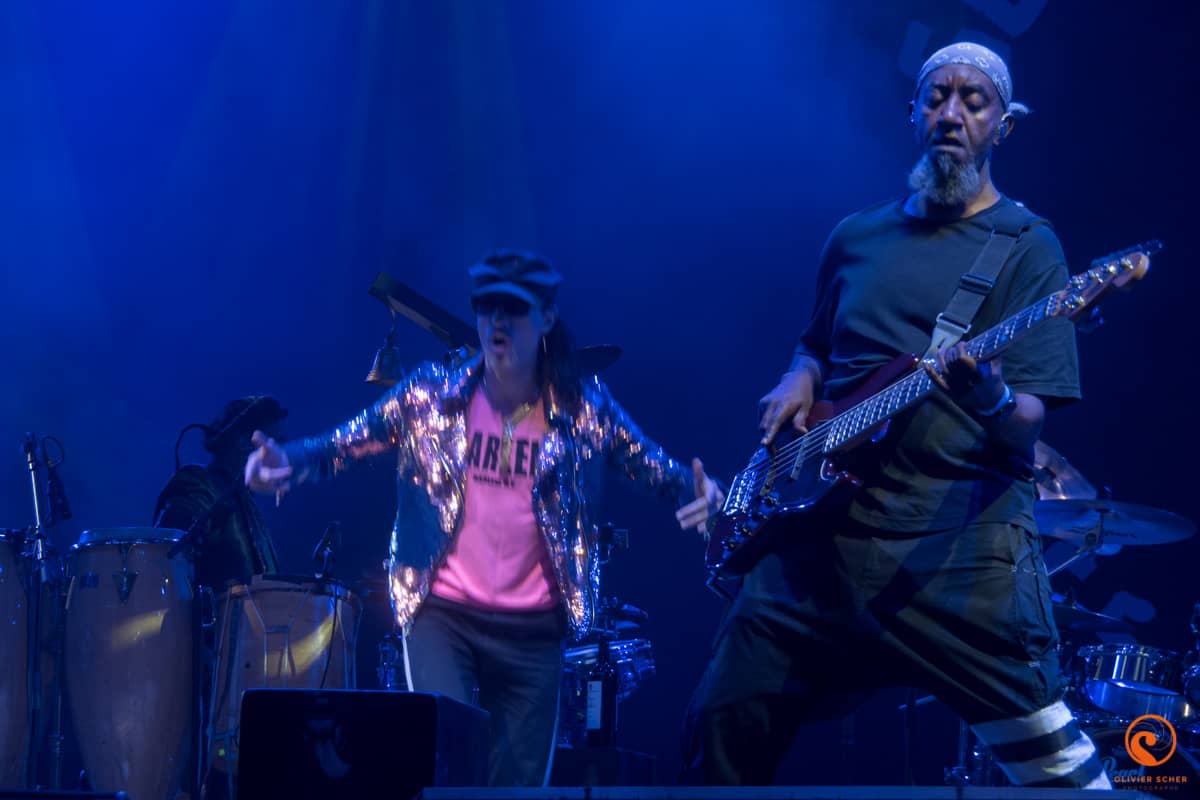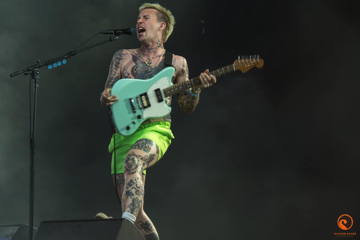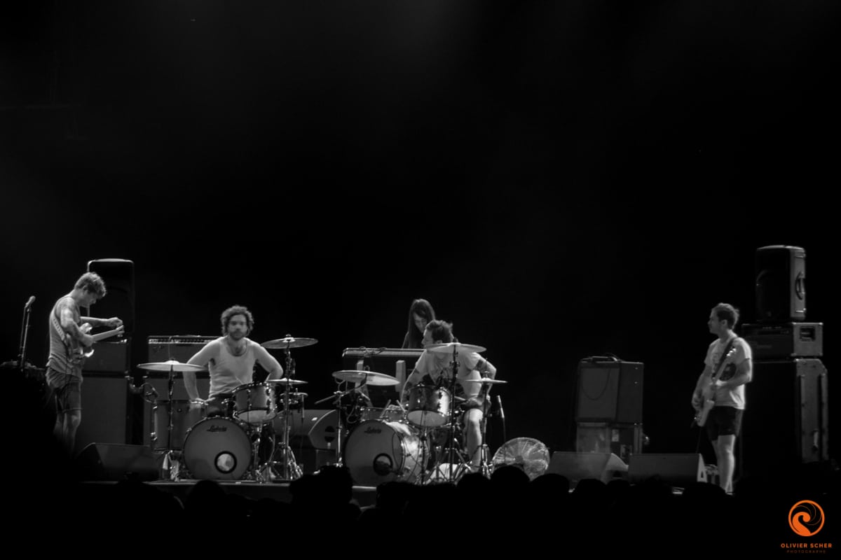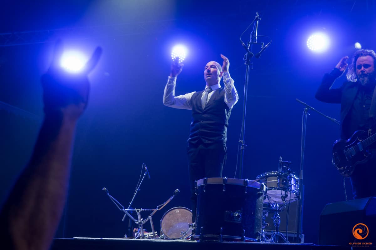 Autant les journées sont très chaudes en cette fin d’été en Creuse, autant les soirée y sont très froides… Retour sur le tarmac de Guéret pour attaquer tranquillement avec Namdose (fusion de Ropoporose et BRNS) qui joue au centre du public. Peu de titres entendus avant de filer écouter Puts Marie. Ce groupe suisse possède vraiment un truc qui accroche, ne serait-ce que par l’attitude lunaire de son leader. En tout cas, ça marche, c’est incarné et on recommande l’écoute de leur dernier album.
