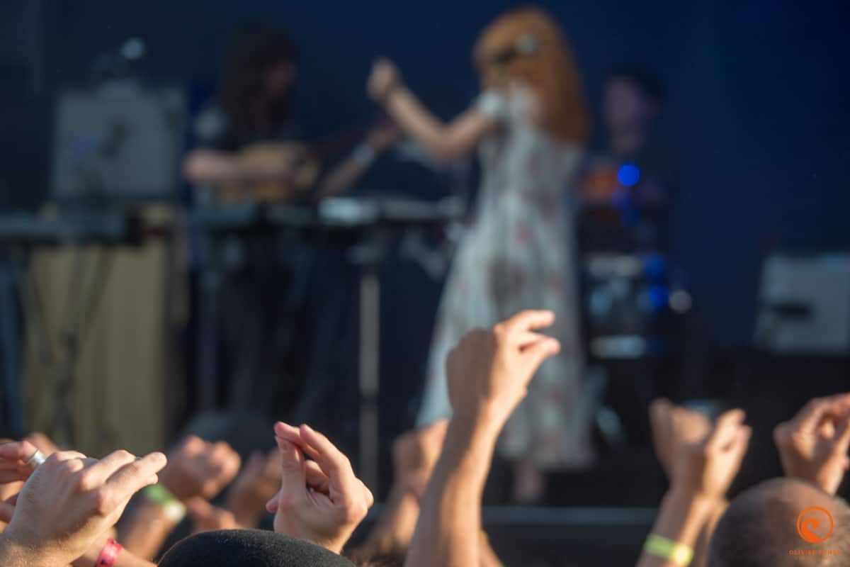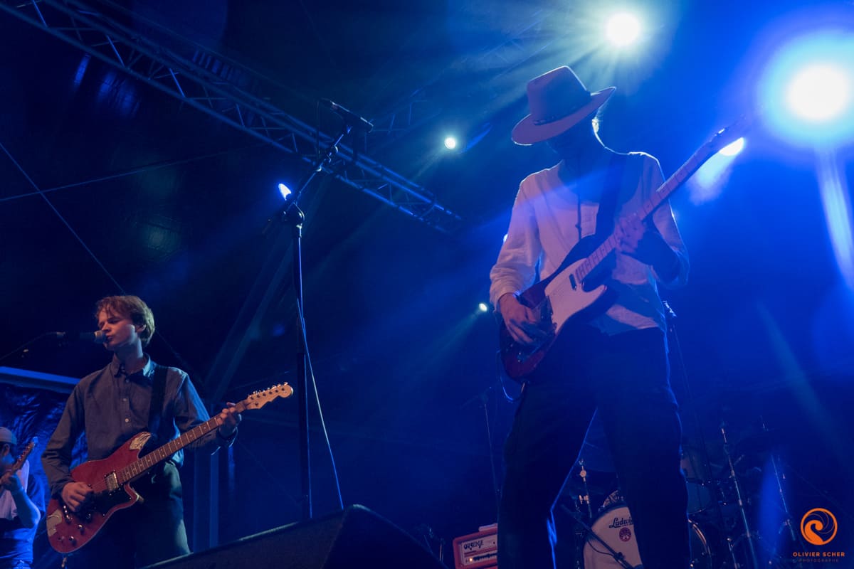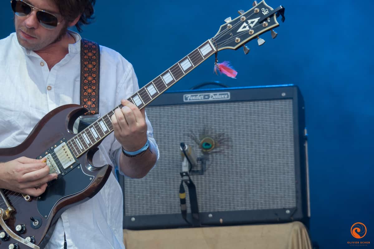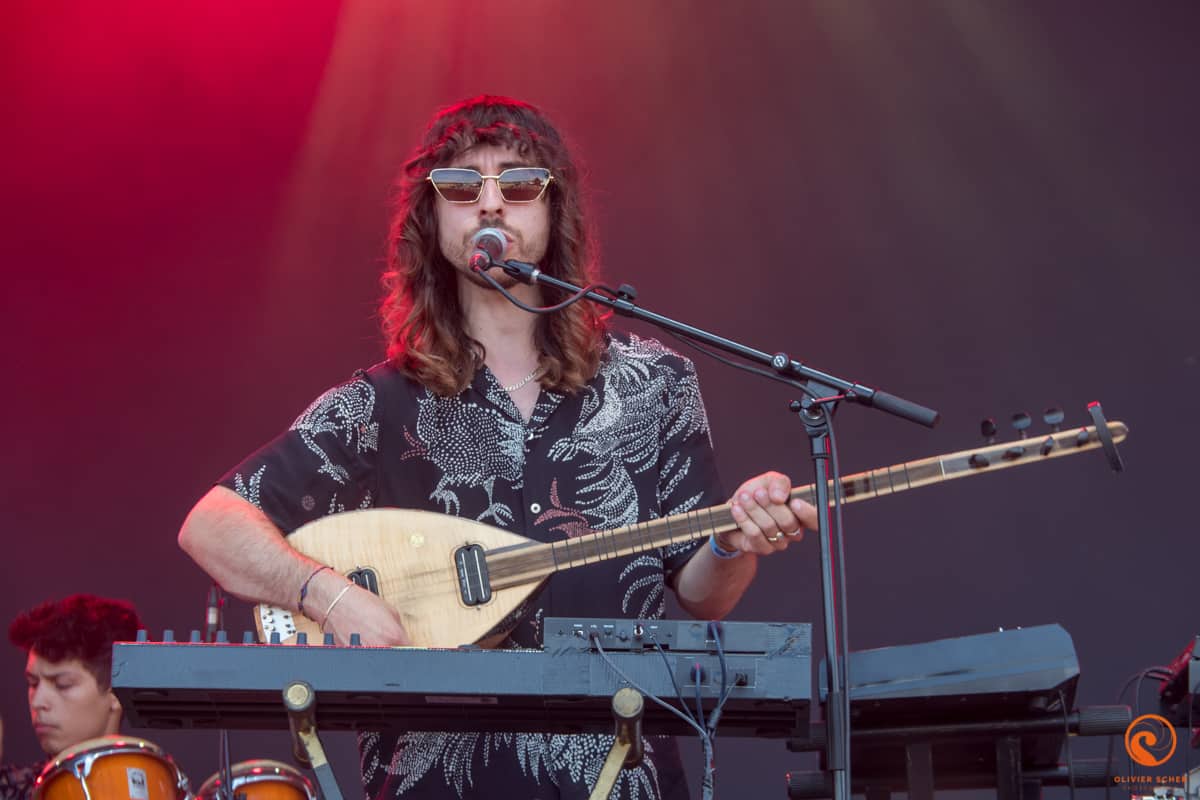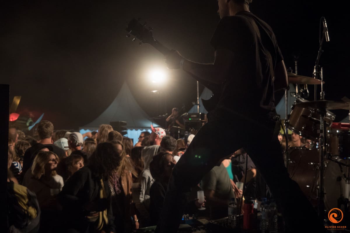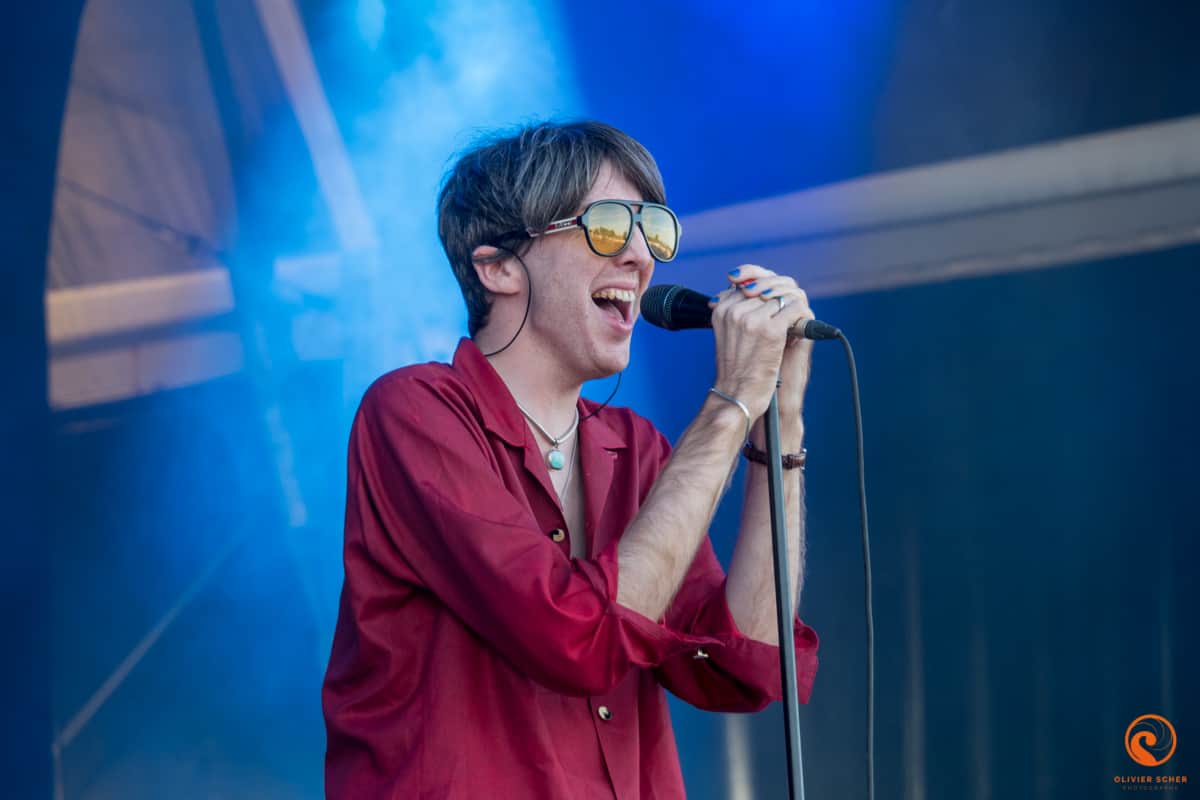 Accoutumés au chaud/froid et à l’infernale poussière du site, nous voilà d’attanque pour cette journée. Nous l’attaquons avec les américains de Bodega. C’est un peu un Arcade fire en plus punk. Pas désagréable du tout en cette fin d’après-midi et une bonne bière creusoise à la main. Sur la grande scène, c’est Altin gün qui s’avance pour un concert plein et peut-être un peu mou alors que la musique proposée est vraiment intéressante. En tout cas, cela fait plaisir de les découvrir sur scène, sacré potentiel. Nous découvrons ensuite Deerhunter qui est bien en forme et qui n’hésitera pas à interpeller plusieurs fois John Dwyer qui fait de bruyantes balances avec Oh Sees juste à côté. Ayant déjà vu ces furieux à l’oeuvre, nous décidons d’aller nous poser autour du projet électro planant de Jacco Gardner du côté de la petite scène (où nous profitons un peu du concert de Oh Sees en même temps vu la puissance du jeu).