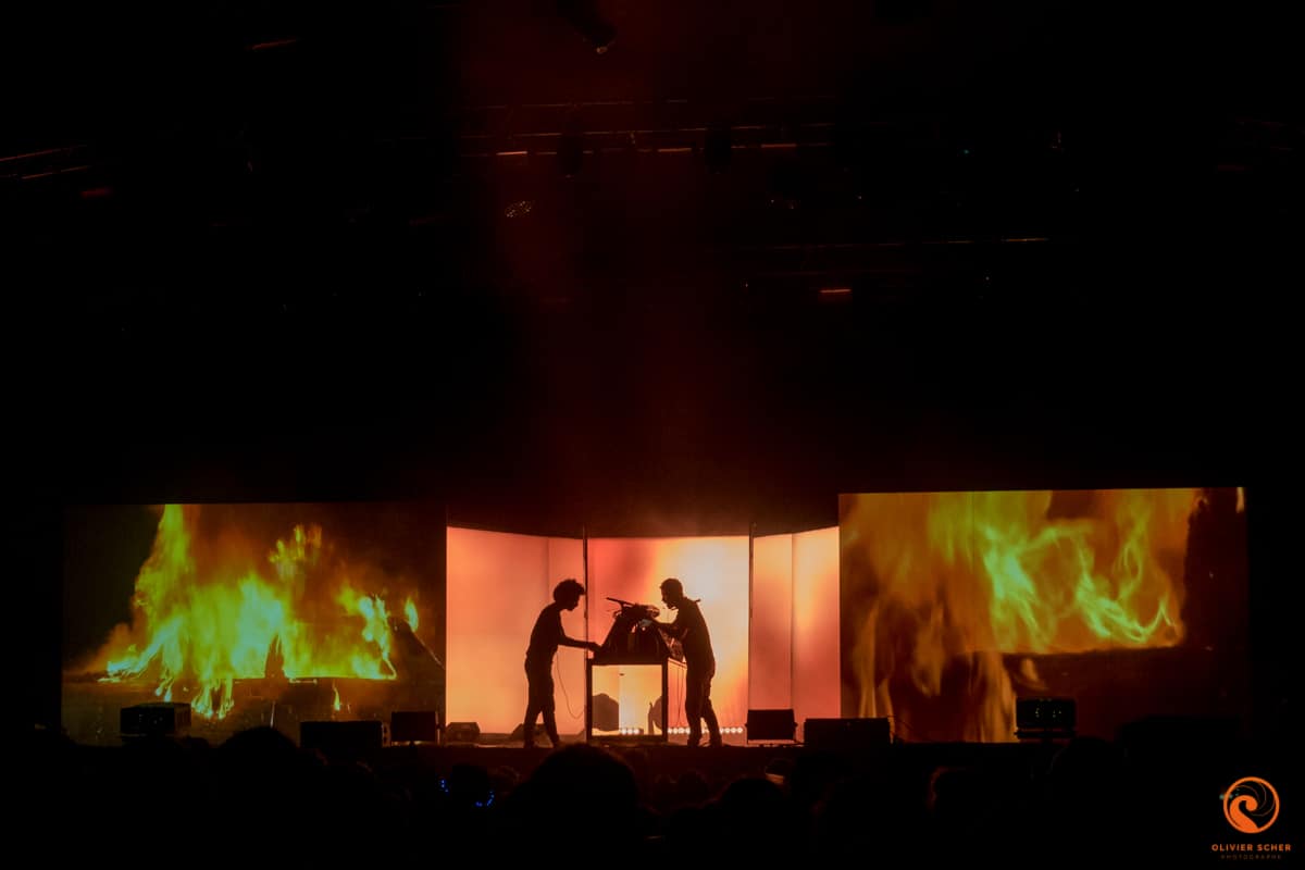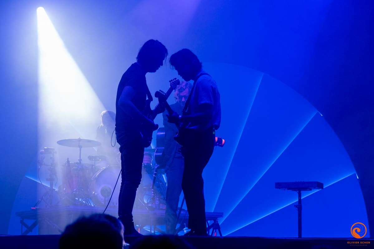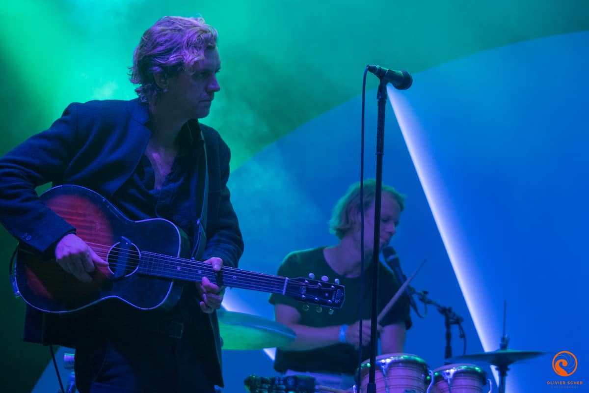 Pendant que la Colonie de Vacances assure son deuxième concert, nous restons profiter de Flavien Berger. Contrairement à son concert au Rockstore il y a quelques mois, il apparait super détendu et assure un concert à la fois décousu et inspiré. Un très bon moment. C’est Balthazar qui concentre ensuite la majeure partie du public. Les belges assurent le show devant des connaisseurs contents d’être là. Si The Blaze prend ensuite le pouvoir, nous filons vers la petit scène pour ne pas louper le phénomène anglais Black midi. Ils sont jeunes et franchement inspirés. Il y a indéniablement un truc qui se passe avec eux que ce soit musicalement ou par leur présence scénique. A suivre… Nous profitons ensuite de la fin du show hyper propre de The Blaze pour nous prendre la grosse patate de la soirée avec le nouveau projet d’Etienne de Crecy. Intitulé Space Echo, l’installation lumineuse accompagne merveilleusement la musique pour un show hypnotique et complètement fou. Le public en redemande et chose rare, Etienne de Crecy assure un rappel non prévu manifestement. Nous finissons la soirée la folle imagination électronique de Ouai Stéphane qui conclut un festival de haut vol !