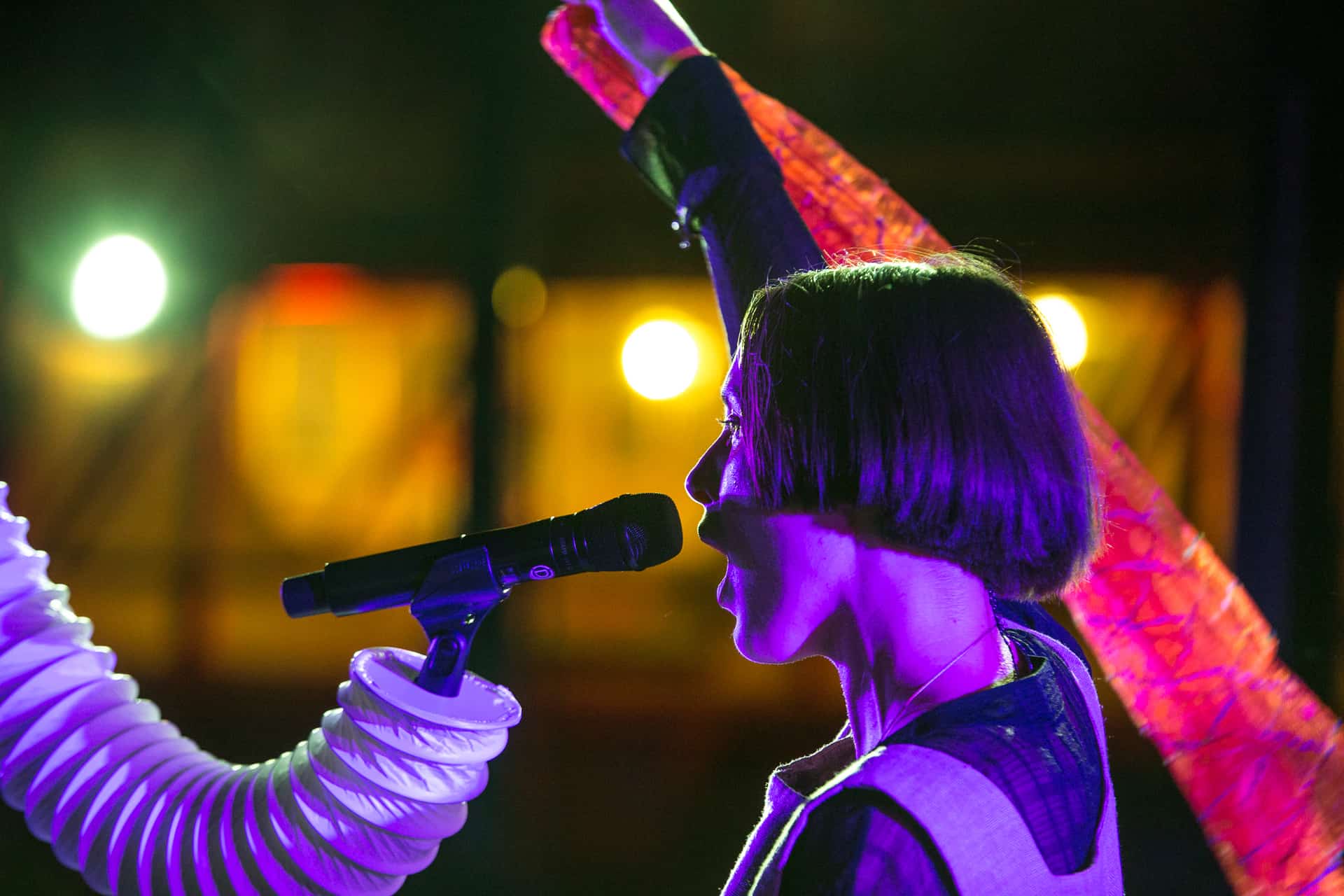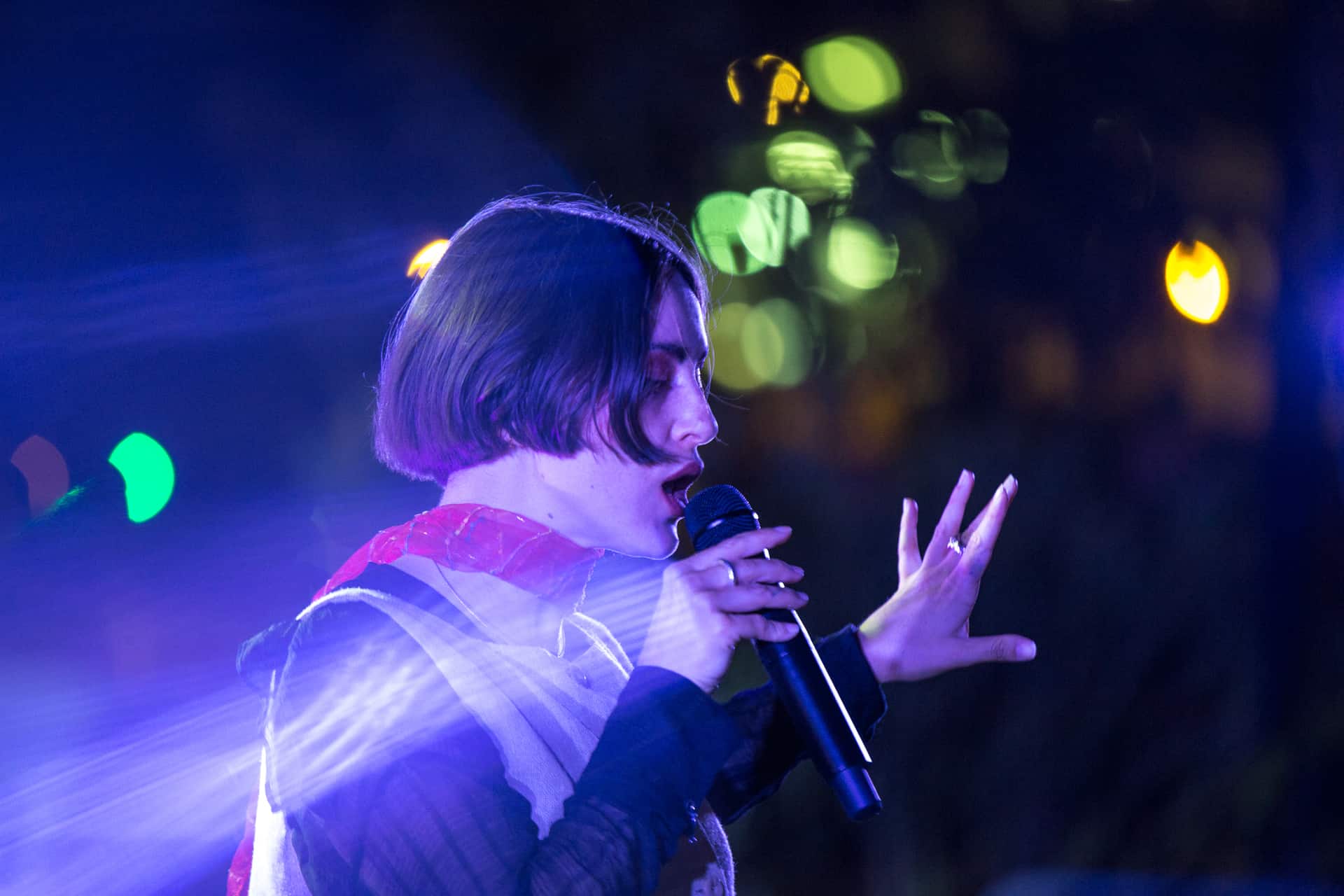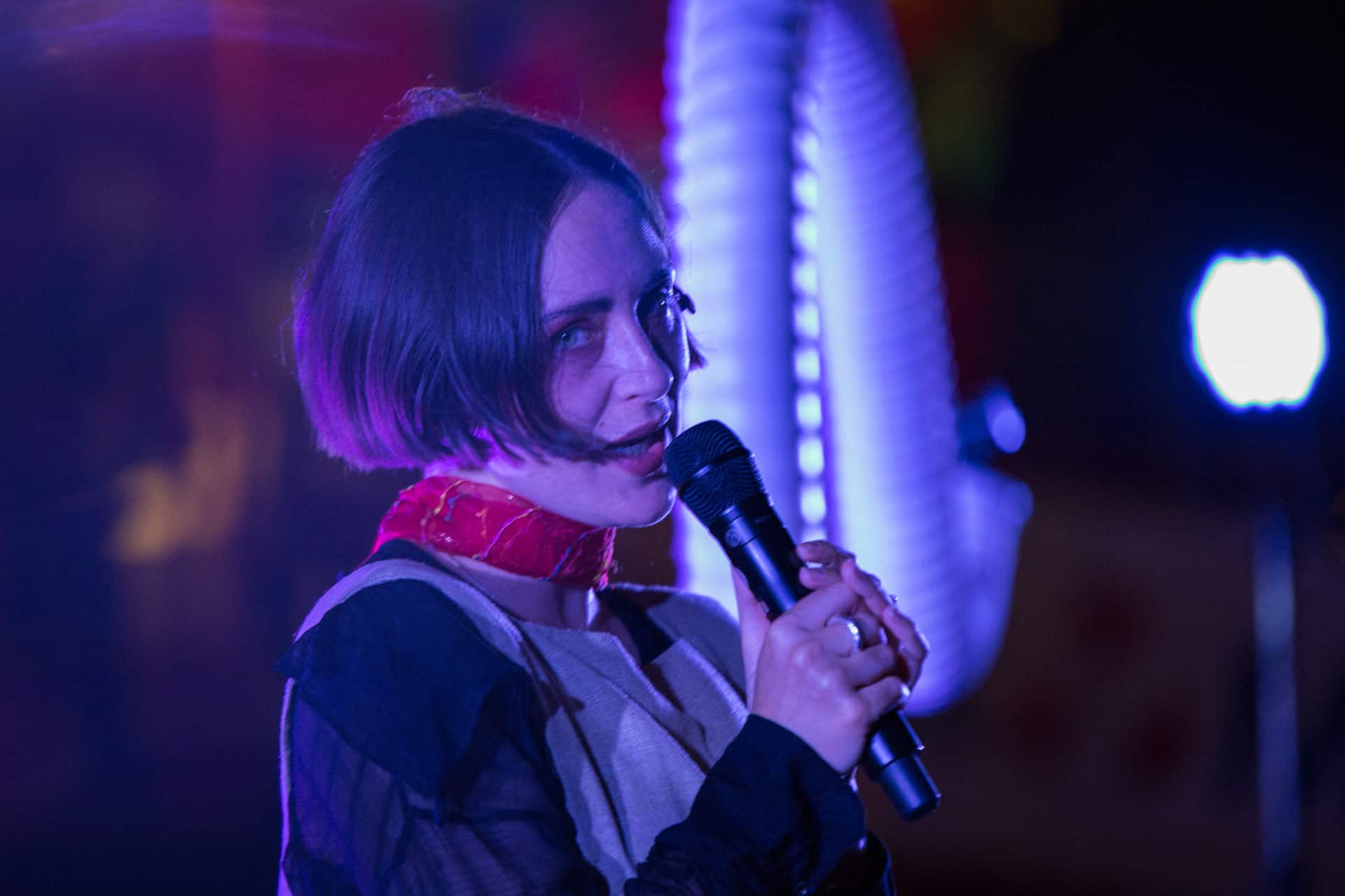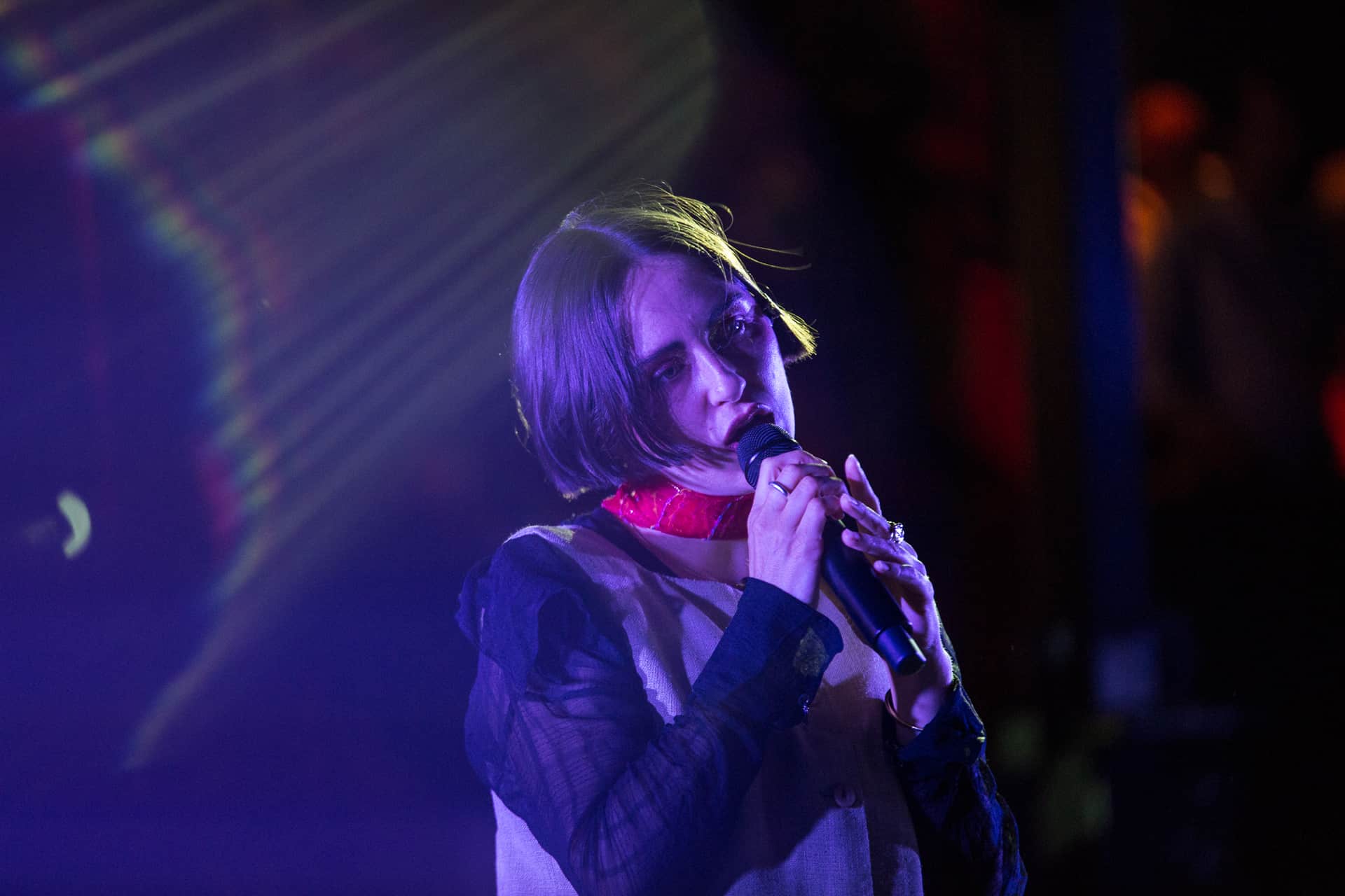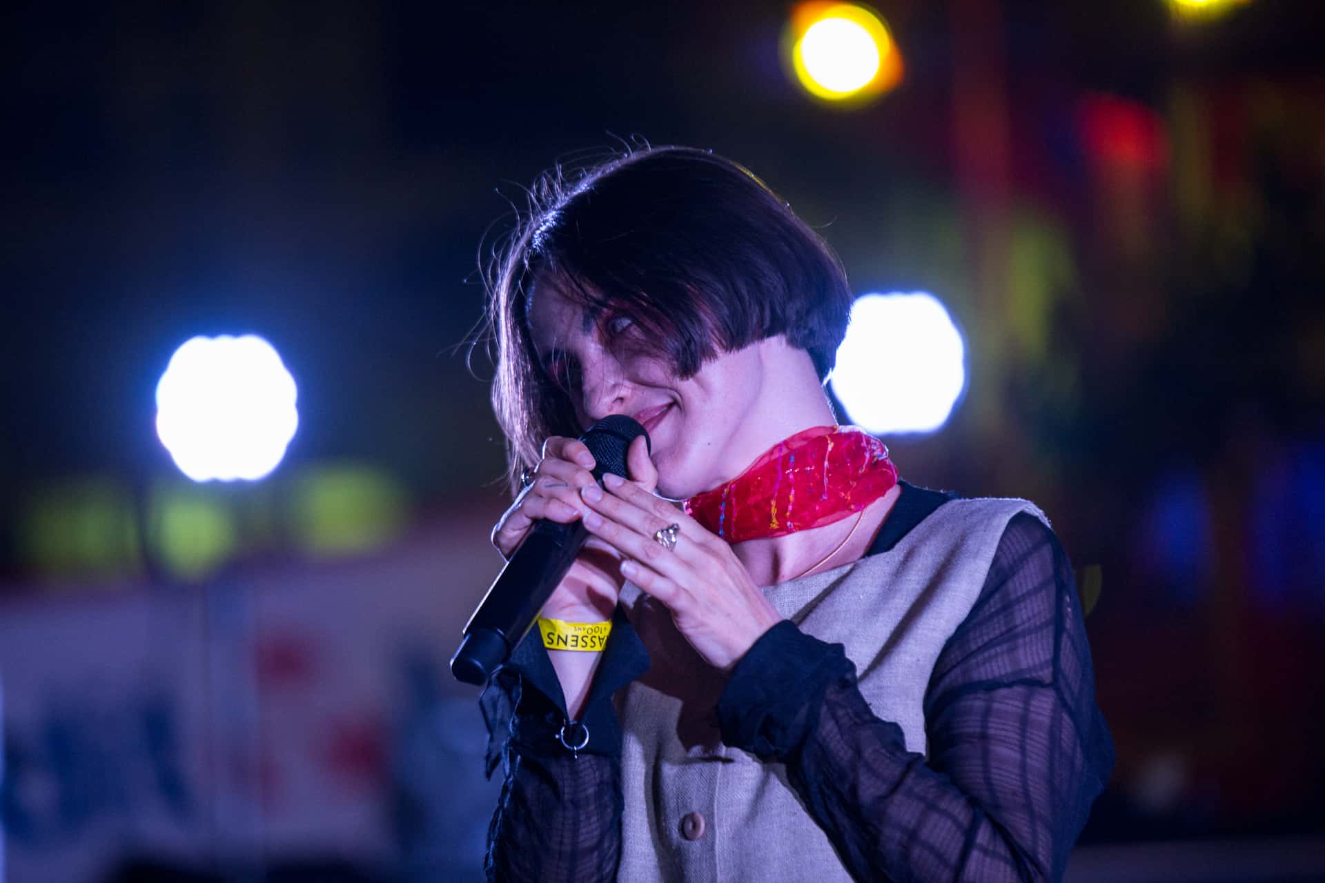 Après cette excellente prestation réalisée sous le regard protecteur de Kiwi records (coucou Prescillia et Lucas), c’est au tour de l’inclassable Bonnie Banane de s’avancer au pied du navire. Et c’est tout en jouant de beaucoup de séduction que Bonnie déroule son set devant de véritables fans.  Bonnie Banane balade son regard magnétique et sa voix grave et trainante depuis une dizaine d’années sur scène, souvent en collaboration avec des artistes variés de Flavien Berger à Myth Syzer. Pourtant, son premier album, Sexy planet n’est sorti qu’en novembre dernier, dans une période plutôt tourmentée. Avec ses textes à la fois poétiques et cyniques qui parlent d’amour et de passion (on pense au titre Béguin) et ses rythmiques RnB, on se laisse vite embarquer dans son univers à la fois coloré et réaliste. Bonnie Banane admire Brigitte Fontaine et cela se sent. Elle reprend d’ailleurs son morceau préféré de la chanteuse de l’ïle Saint-Louis, j’ai 26 ans dont elle propose une version très belle et épurée. Proche de son public, Bonnie Banane n’a de cesse d’y planter son regard, le séduisant tout du long, pleine d’une sensualité palpable. Nous avons assisté à un concert assez fascinant porté par une artiste hors norme qu’on retrouvera avec plaisir sur d’autres scènes.