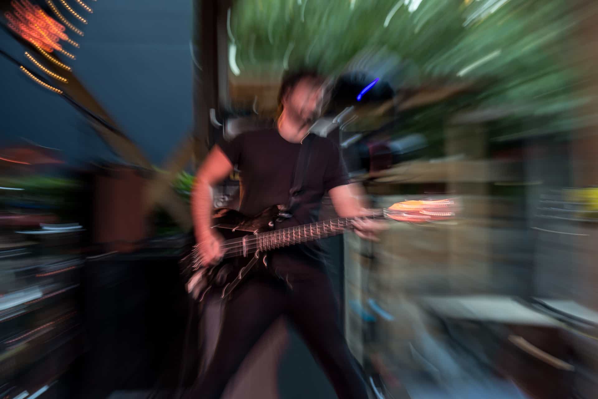 Nous terminons la soirée avec la tornade Van Fritzmool. Autant le dire, nous n’étions pas prêts à toute cette dinguerie et cette énergie libérée par le trio. Passant du math-rock à la pop destructrice, on en prend les oreilles et le corps. Cet élan de folie a le mérite de faire bouger le public du patio trop content d’écouter un truc fait réagir ton corps malgré toi. Une fin de soirée comme un feu d’artifice et le plaisir d’avoir passé encore une chouette soirée à I love Patio.