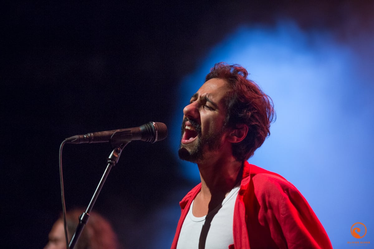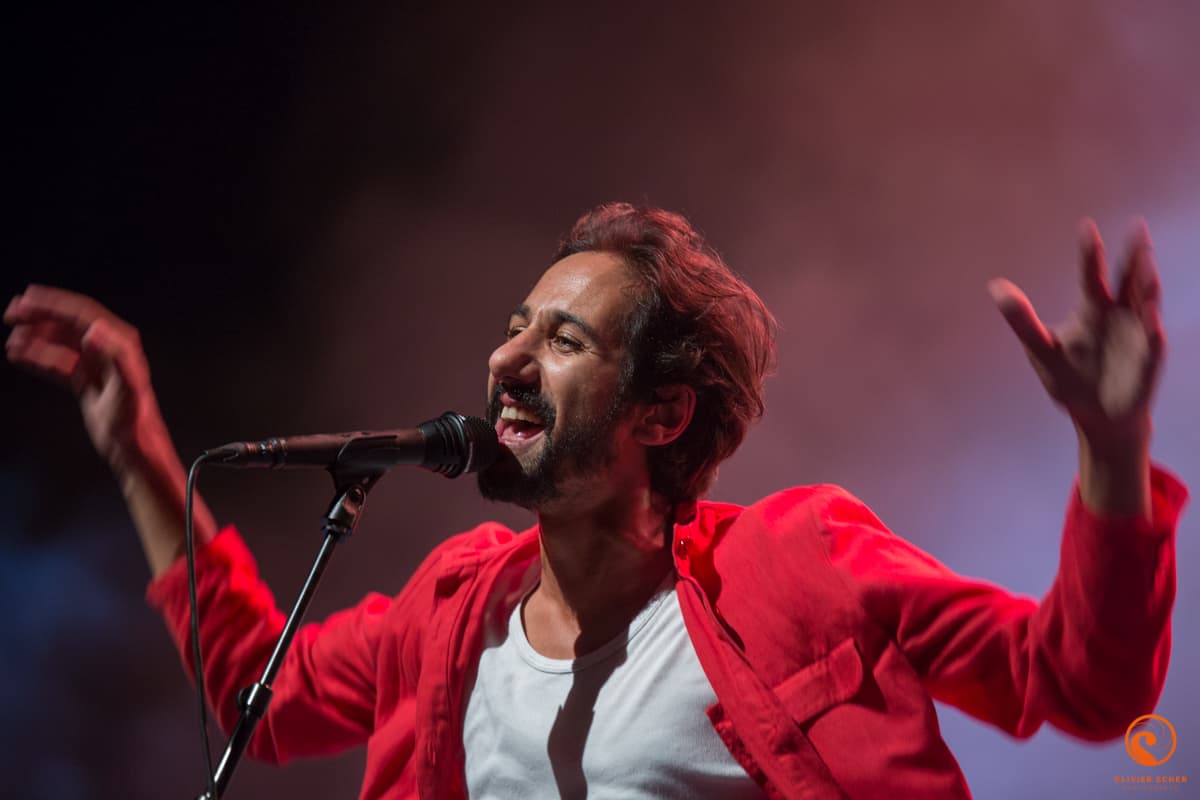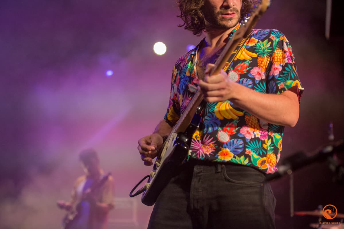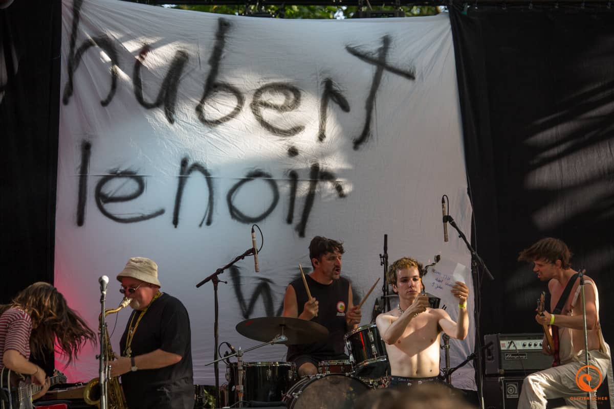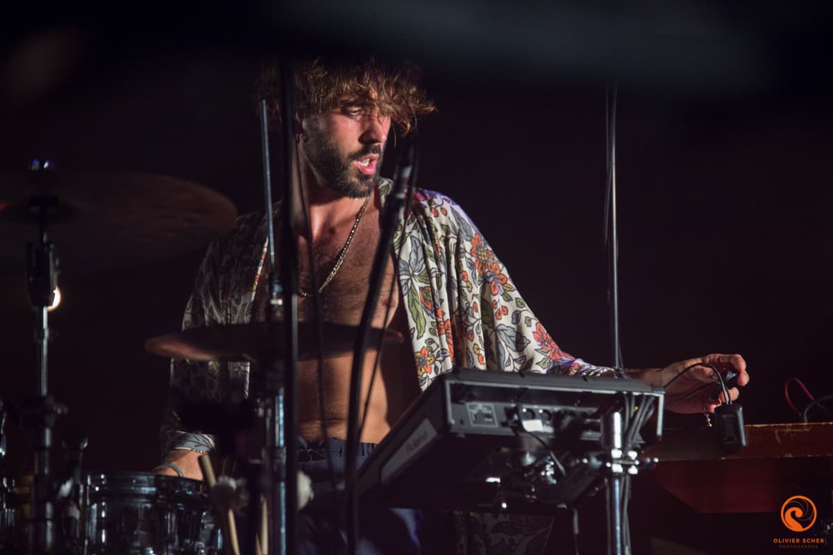 Premier concert et première sensation. Hubert Lenoir ne tient pas en place, court d’un bout à l’autre de scène, harangue la petite foule venue assez tôt. Avec son nom écrit à l’arrache sur un drap blanc en fond de scène, on se demandait ce qui allait bien pouvoir se passer… Et on a pas été déçu ! Le set est original, alternant rock progressif, jazz, pop voire soul et la présence du chanteur est captivante. Tous ont l’air de prendre plaisir sur scène. Hubert Lenoir quitte même la scène pour aller se servir des bières au bar et en profite pour me chiper mon verre de vin (à charge de revanche). Tous les musiciens viennent de Québec et ont l’air de bien apprécier le vin local (au goulot) ! Le groupe revient en Europe en novembre, une bonne occasion de les découvrir sur scène !