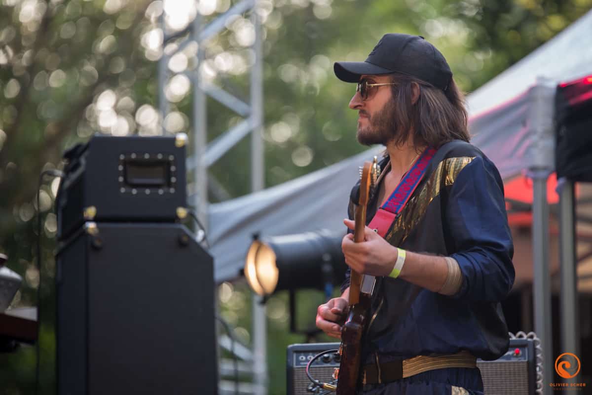 La fin d’après-midi sous les platanes et le chant des cigales commence avec les sons de DJ Paxton. Il assurera l’ensemble des inter-scènes ce qui permet de conserver une ambiance musicale sans coupure.
