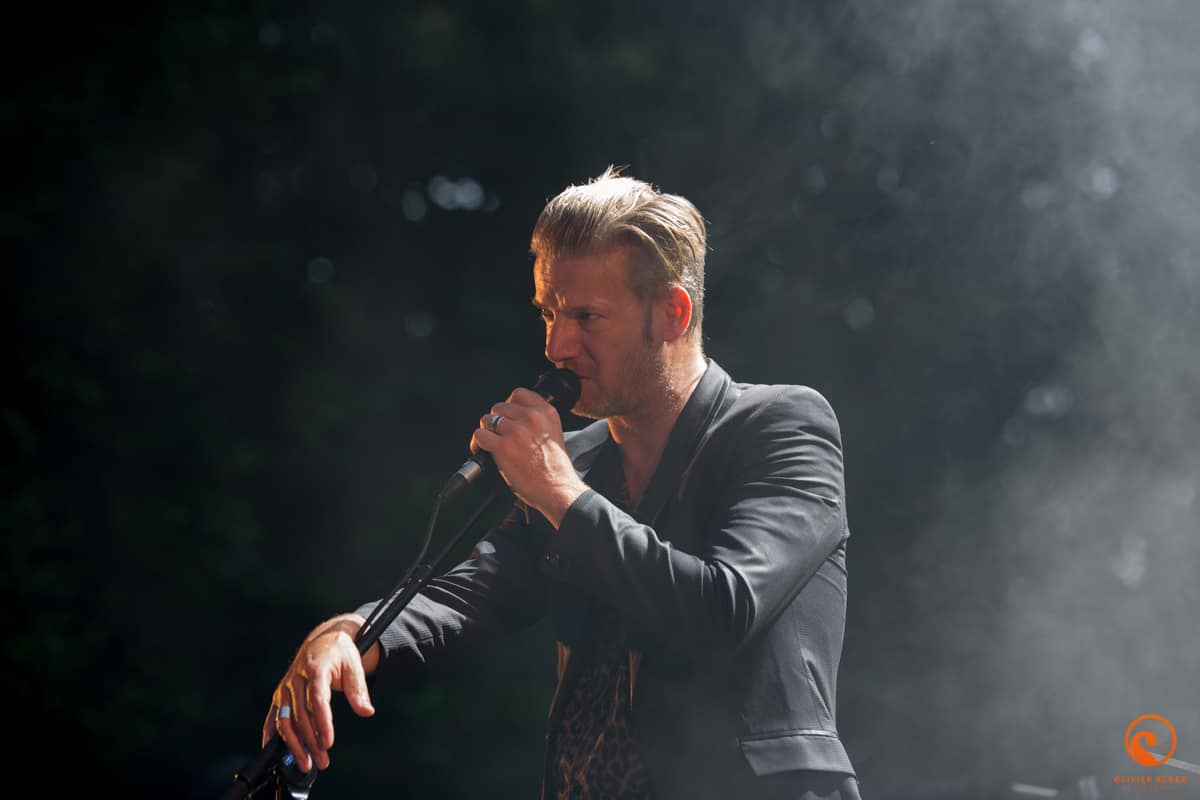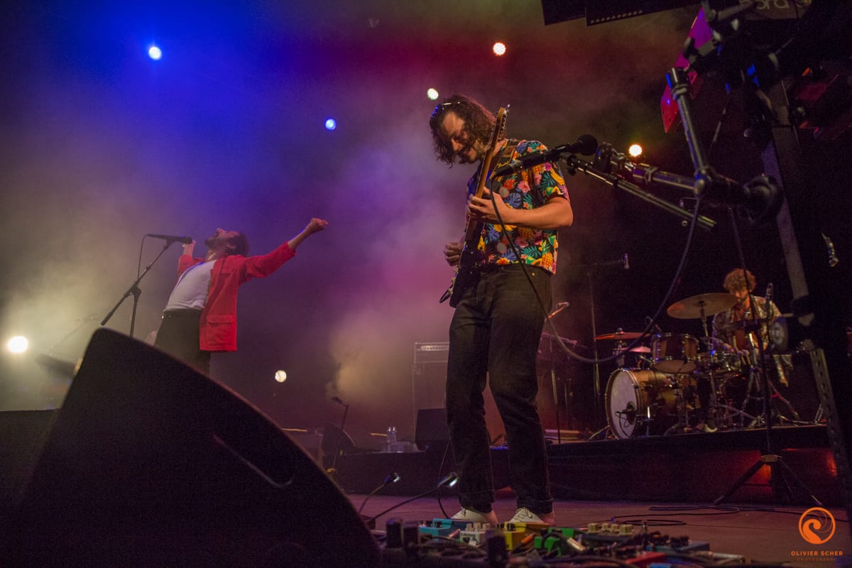 En voilà un groupe qu’on était content de retrouver sur scène ! Car oui, Feu ! Chatterton est une expérience à part entière. Bien au-delà de ce que peut produire un groupe de rock, il y a la présence magnétique du chanteur Arthur Teboul. Et ce dernier prend le temps d’installer son univers et de nous y faire entrer. Même les cigales, toujours actives à cette heure tardive de la nuit participent au show. Tout devient source d’histoires, depuis les arbres qui entourent la scène jusqu’à ces bruyants insectes, et prétexte à de longues introductions de chansons. Le répertoire des deux albums est parcouru avec même une nouveauté en milieu de show. Le public est charmé par la proposition à l’exception d’une personne (qui le fait bruyamment savoir) et qui sera recadrée par le chanteur de belle manière. Nous avons vécu un très beau moment sous les platanes du Domaine de Fontblanche avec la poésie de Feu! Chatterton. Bravo.