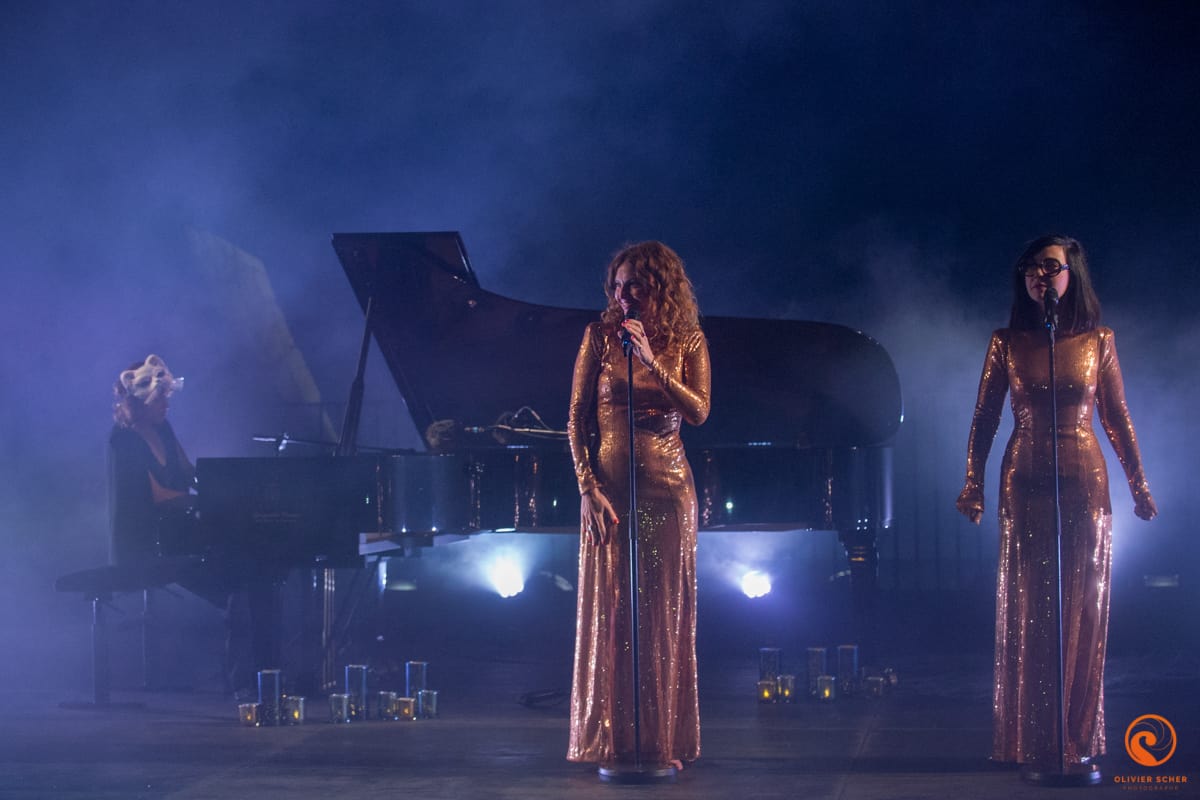 Le duo Brigitte assurait la deuxième soirée du festival seulement accompagné d’un piano. C’est dans cette version acoustique qu’elles ont repris une bonne partie de leur répertoire. Bien que déterminées à se confronter au public en démarrant leur show au milieu de la fosse, la magie ne semble pas avoir opéré comme cela a pu l’être la veille avec Jean-Louis Aubert. Par contre, rien à redire du côté de la mise en scène et des très beaux tableaux présentés.