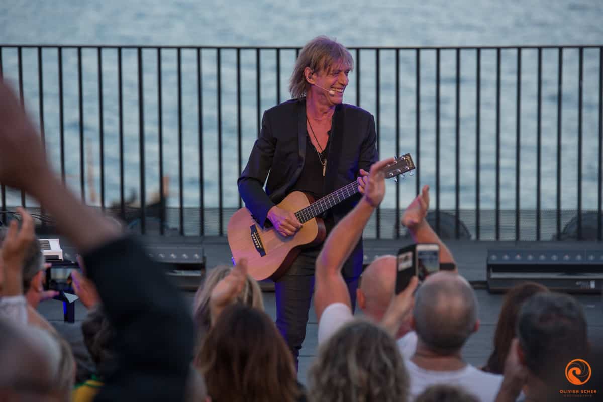 Habitués au théâtre de la Mer, nous ne nous attendions pas à découvrir une file d’attente de cette longueur pour cette première soirée. C’est que Jean-Louis Aubert a la côte et que personne ne voulait rater l’unique artiste de la soirée. L’ancien leader de Téléphone est apparu plus qu’heureux de se retrouver face à un public tout acquis à sa cause. C’est dans une version plutôt minimaliste que ce dernier a assuré un show très dense. Seul sur scène et jouant de tous les instruments mis à sa disposition (guitare, piano, percussions), Jean-Louis Aubert n’a pas cessé de venir à la rencontre du public depuis la fosse jusqu’au milieu de l’arène. Ce public lui a d’ailleurs rendu la pareille d’une drôle de manière en le filmant au téléphone parfois à 20 cm du visage… Assez incompréhensible quand on peut profiter de cet artiste de manière aussi « intime ».