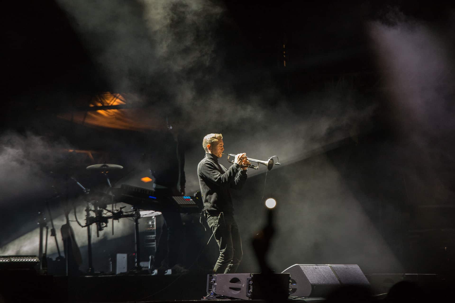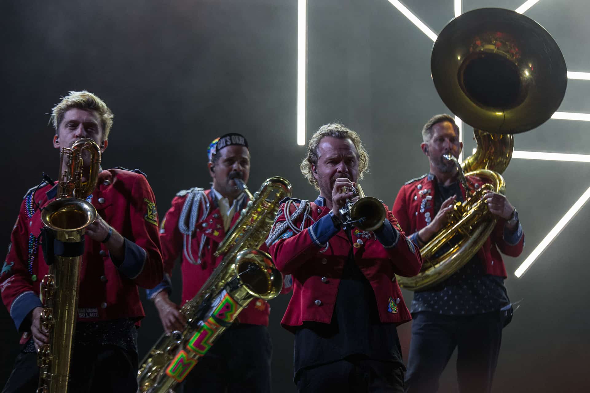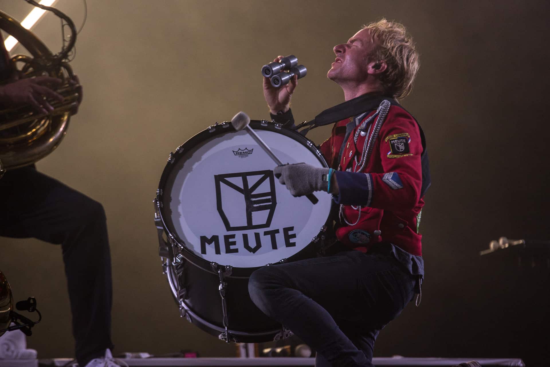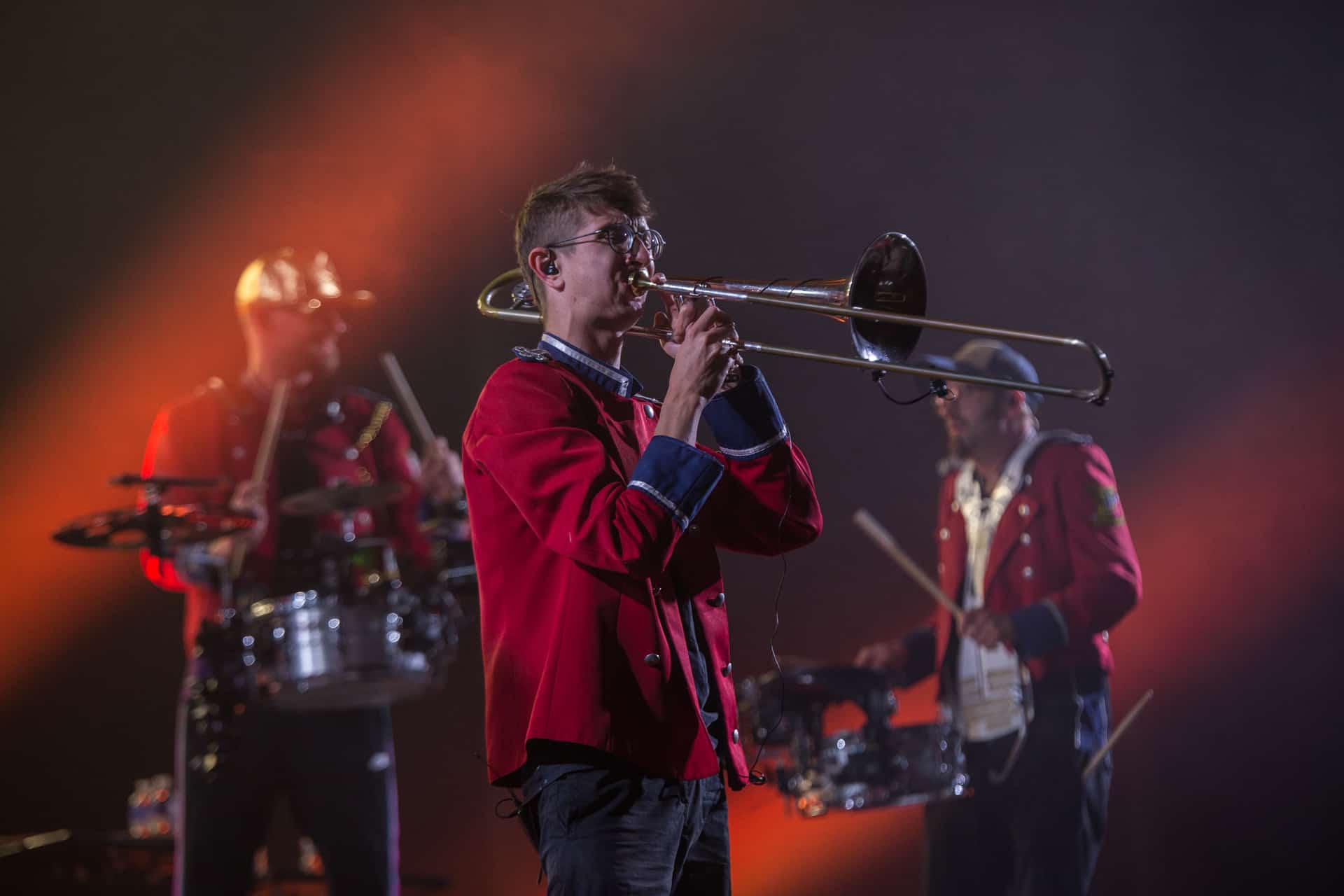 Nous ne bougerons pas du secteur après ce concert, histoire de pouvoir bien profiter de Meute dont toutes les dates ont été annulées ou repoussées ces derniers mois. Cette fanfare « électro » allemande est une vraie machine à faire danser déployant une puissance hors norme et une énergie qui va renverser le J4. La recette, basée sur la reprise « organique » de titres électros, est diablement efficace car Meute y injecte une vraie identité et une énorme envie de communion avec le public. Certes, les 2-3 morceaux chantés n’apportent pas grand chose, mais le reste du show électrise la foule et file la banane à tout le monde. Quel bonheur de pouvoir enfin communier de la sorte après presque deux ans de distanciation sociale. La grosse claque du festival tant cette musique correspondait à un vrai besoin de retrouvailles entre scène et public. Du pur plaisir pendant presque deux heures.