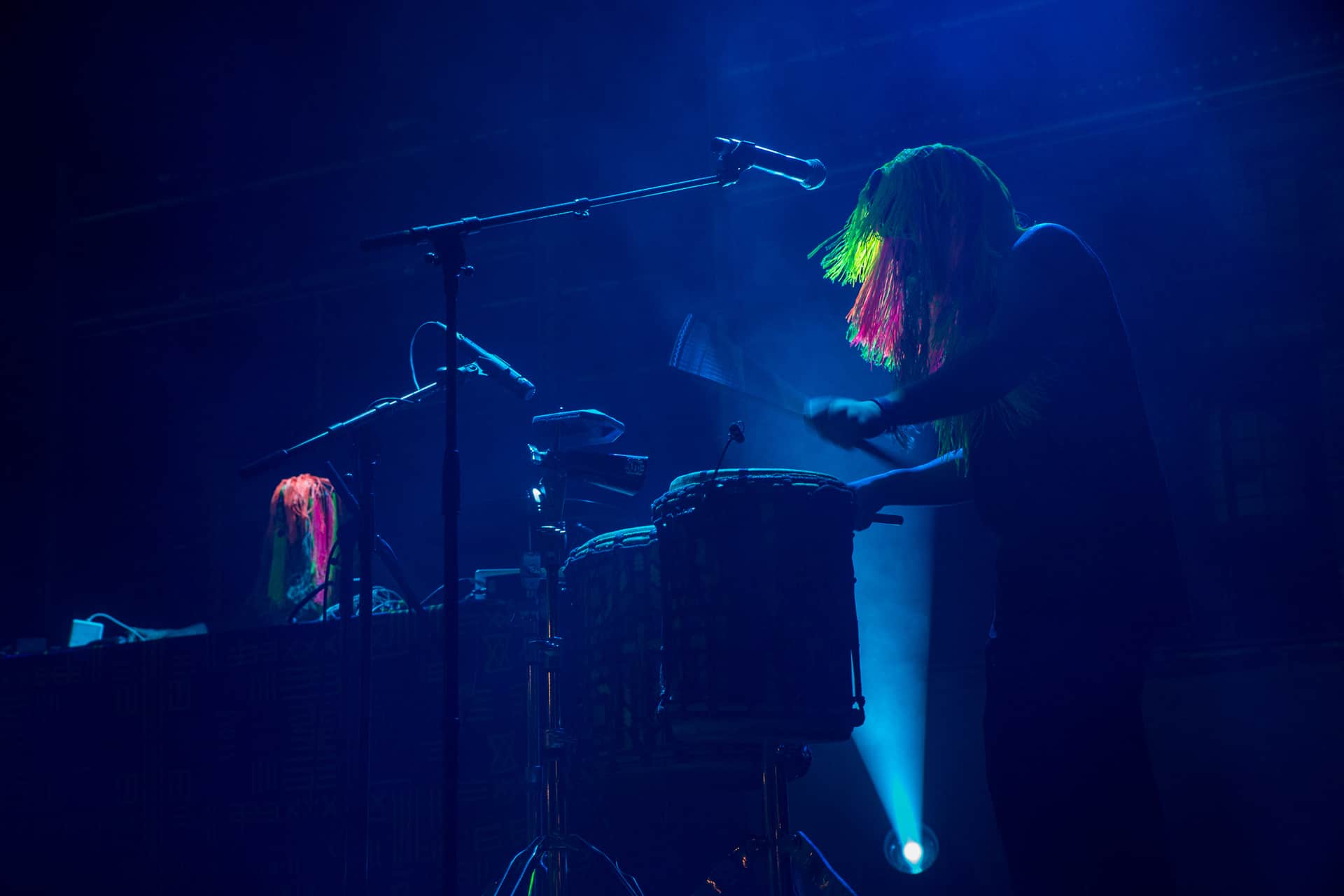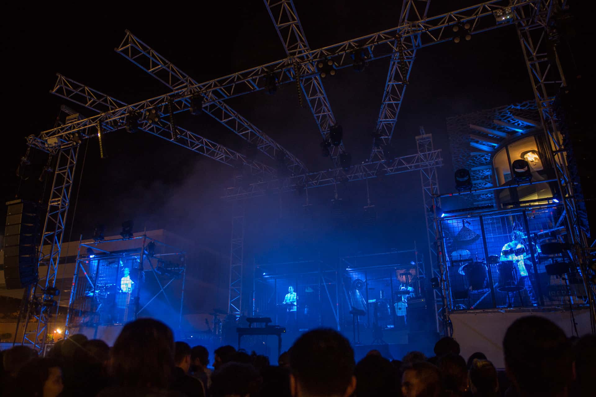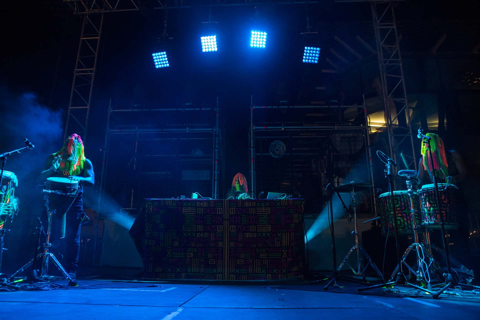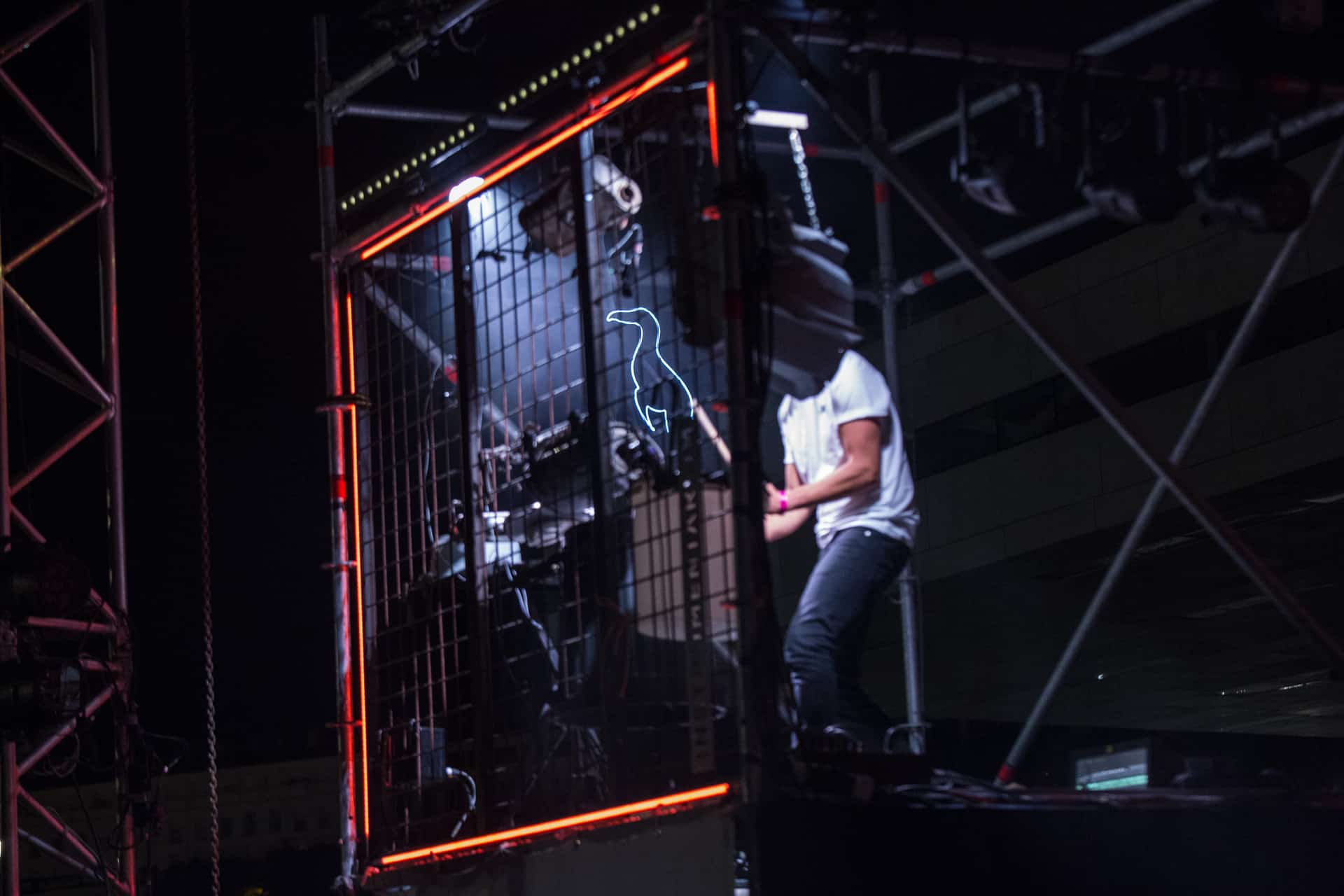 Nous passons ensuite du côté de la scène Major pour retrouver le projet électro-recyclage Instrumentarium du collectif arbuste qui viendra rythmer cette scène au cours des trois soirées. Ça tabasse grave avec les quatre musiciens percussionnistes installés dans des cages en métal. La proposition est efficace, entrainante et festive. On en redemande. C’est une excellente idée de les avoir intégrés à la programmation.