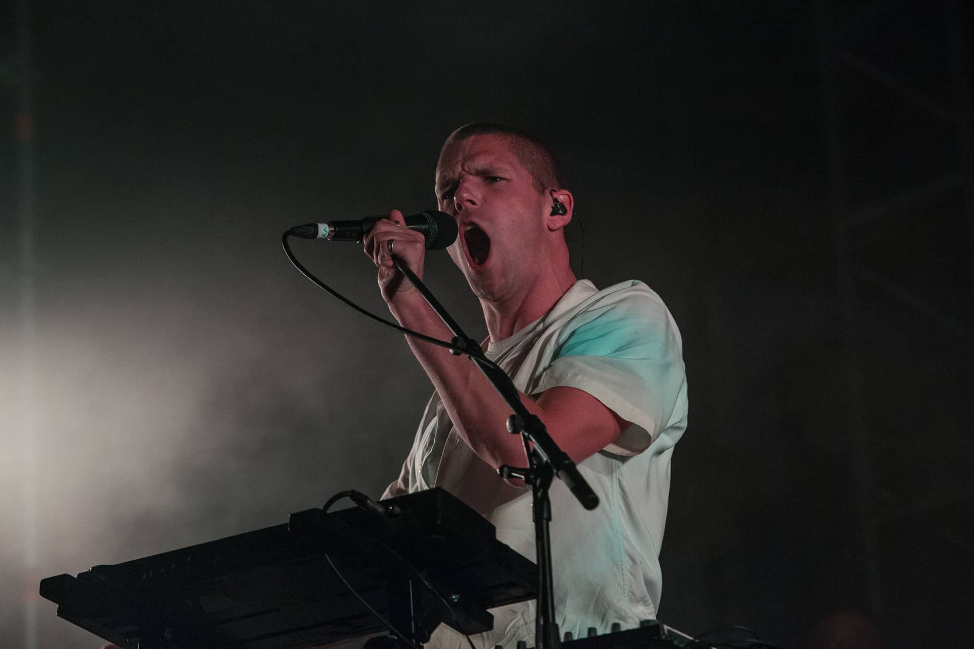 Déjà le dernier jour et encore beaucoup d’artistes à écouter ce samedi marqué par le retour de la foule. En effet, si le premier soir a affiché 6500 festivaliers au compteur et le vendredi 5300 (malgré la présence de Woodkid), ce soir c’est 9000 personnes qui foulent l’esplanade du J4. A l’origine la jauge avait été limitée à 10 000 personnes donc pas bien loin de ce samedi. Et c’est Balthazar qui ouvre les hostilités sur la scène Mer. Quel plaisir de retrouver le groupe de rock indé belge, pas vu sur scène depuis l’excellent Check-in-party de Guéret en 2019! Et en seulement deux ans, Balthazar a sorti deux albums, n’ayant visiblement pas été freiné par les confinements à répétition pour créer. Le groupe a d’ailleurs évolué vers une musique plus accessible, incluant une utilisation plus marquée de l’électronique tout en conservant les riffs de guitares. Le show est à la hauteur et nous sommes vraiment ravis de les redécouvrir sur une grande scène.
