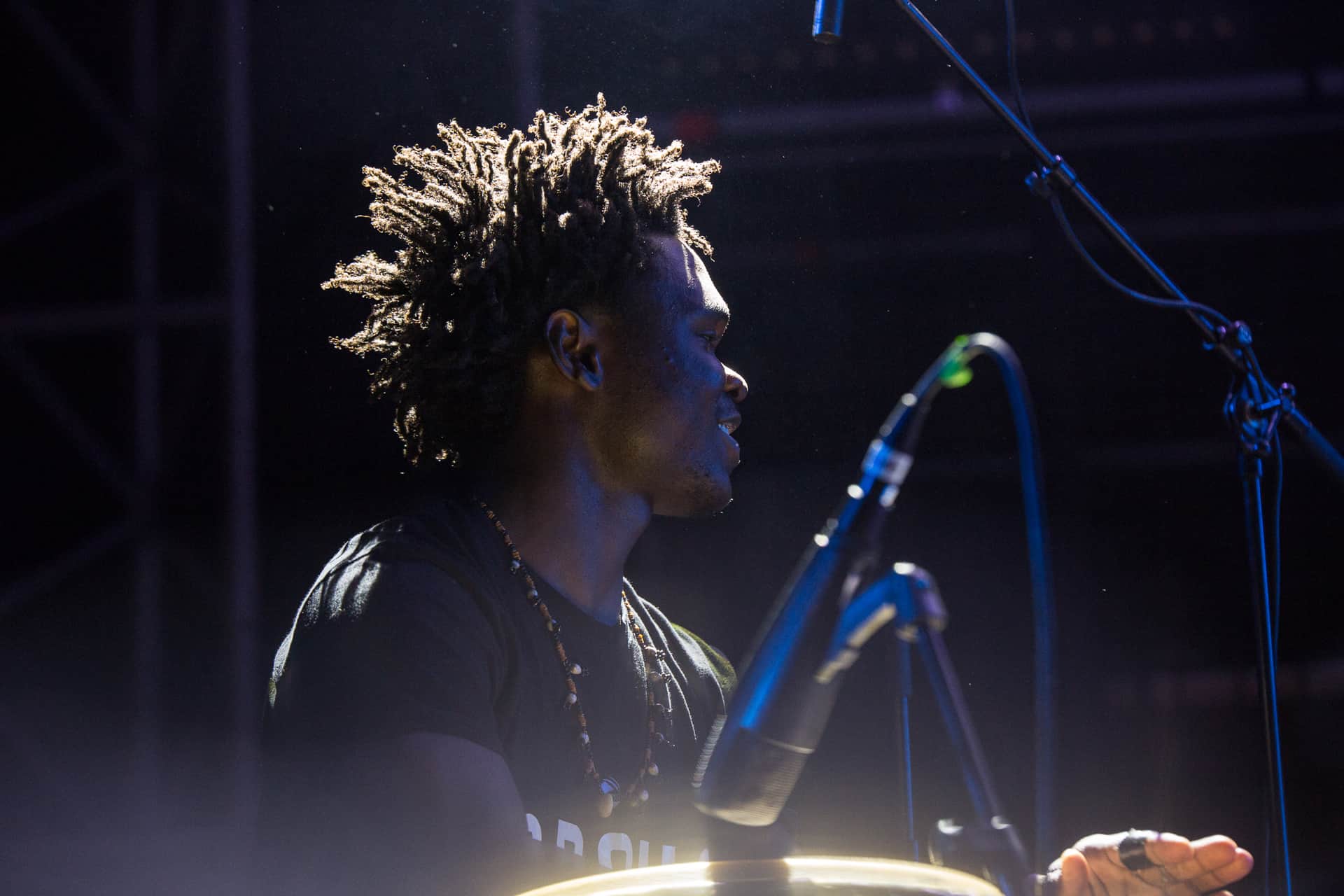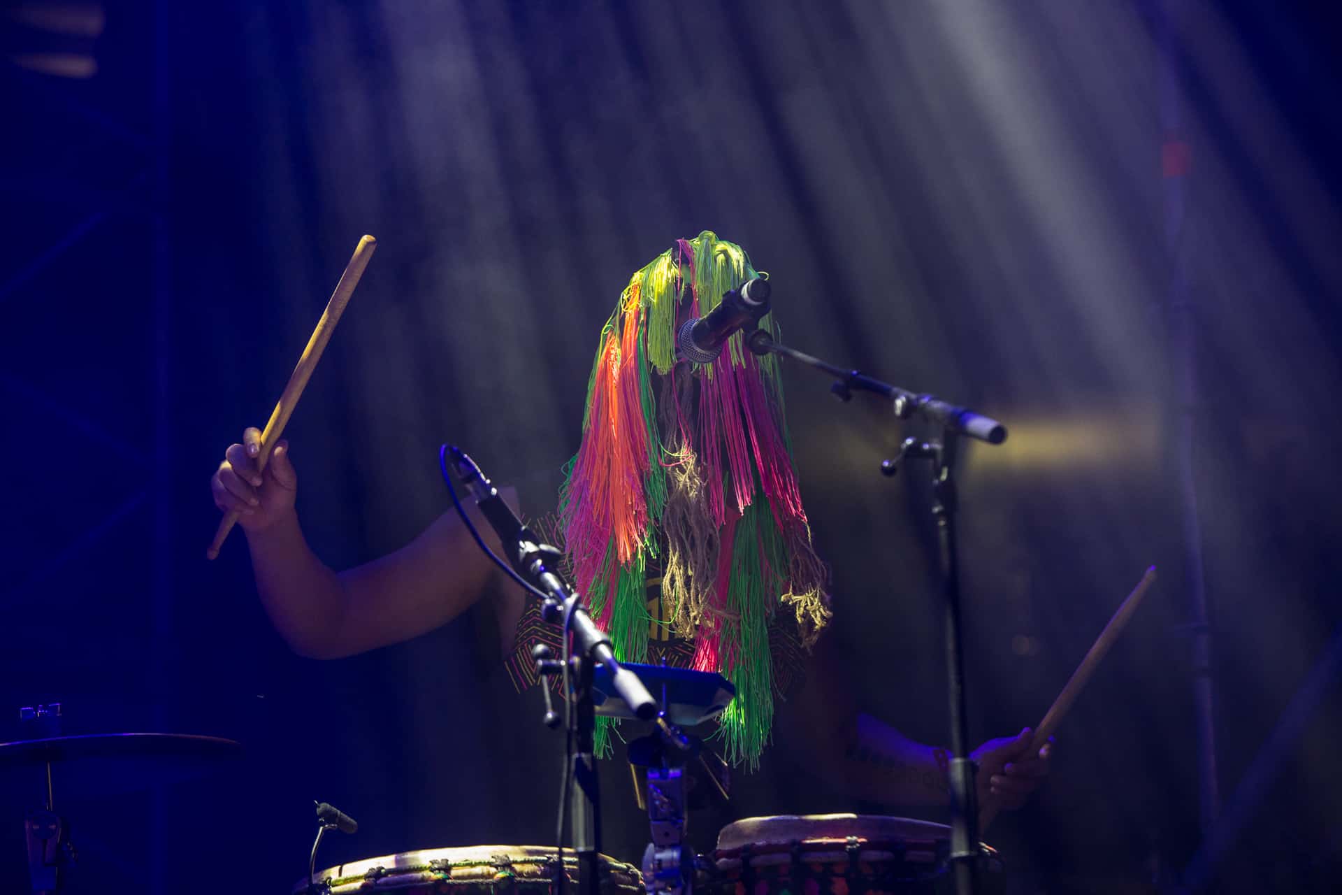 La Fiesta des Suds nous offre ensuite un voyage vers l’Amérique du Sud en invitant le trio colombien Ghetto Kumbé que nous avons eu la joie d’interviewer dans l’après midi. Nous reviendrons donc plus longuement sur ce groupe dans un prochain article. Néanmoins, le moins qu’on puisse dire c’est que le cocktail cumbia/afro-colombien/hip-hop est d’une grande efficacité pour faire entrer en transe le public encore présent sur l’esplanade. Ce fut un vrai bonheur de les voir enfin sur scène après de nombreuses écoutes de leur premier album.