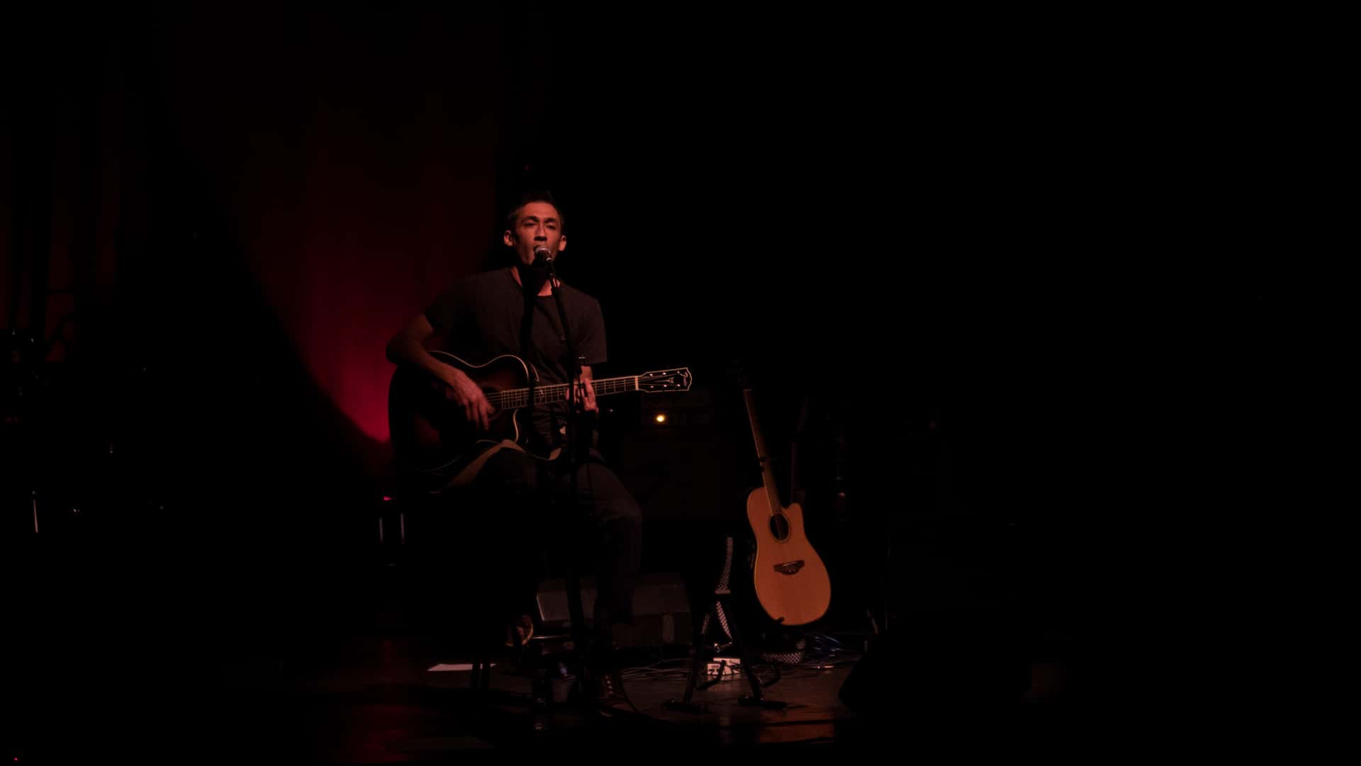 Xuan, le chanteur d’Odlatsa, ouvre les hostilités, assis au milieu d’une scène qui ne cessera sans doute jamais de nous éblouir de sa beauté, sous une douche le coupant du public, croque le premier cette soirée de deux chansons aux allures révoltées, à la poésie charmante, à la voix troublante, une bien belle entrée en matière !