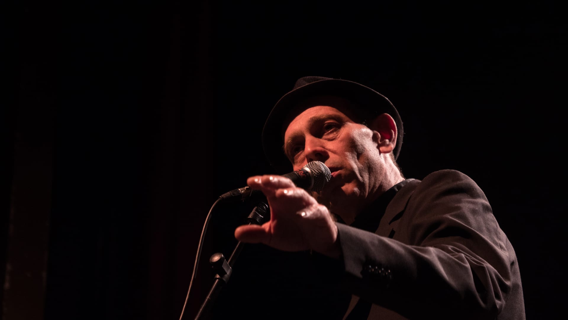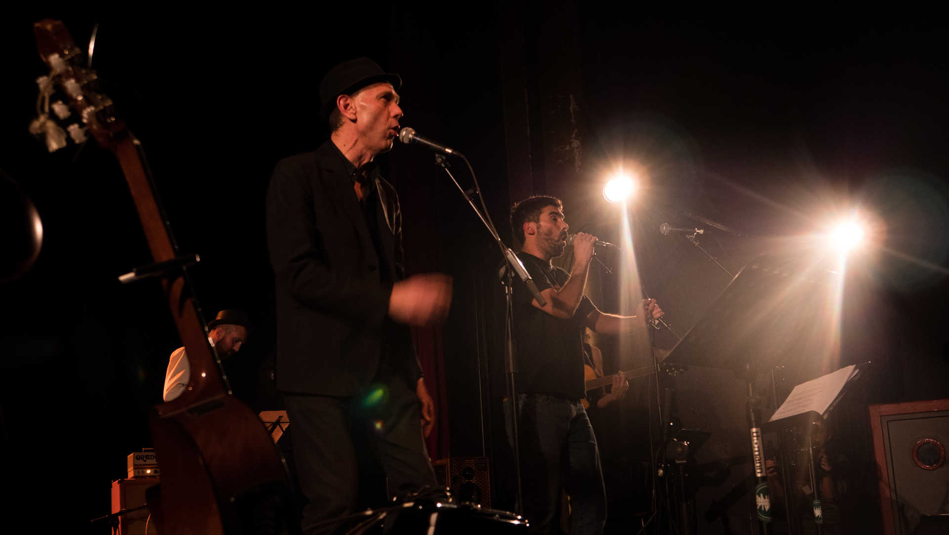 Comme l’idée du collectif est une idée de partage, c’est tout naturellement que Frédo s’est permis d’inviter un sacré morceau de personnage à cette soirée : Christian Olivier. Le charismatique chanteur des Têtes Raides s’avance sur scène à la fin d’une chanson, toujours sans pause, et dès les premières notes suivante, sa voix résonne, le public est sous le charme.