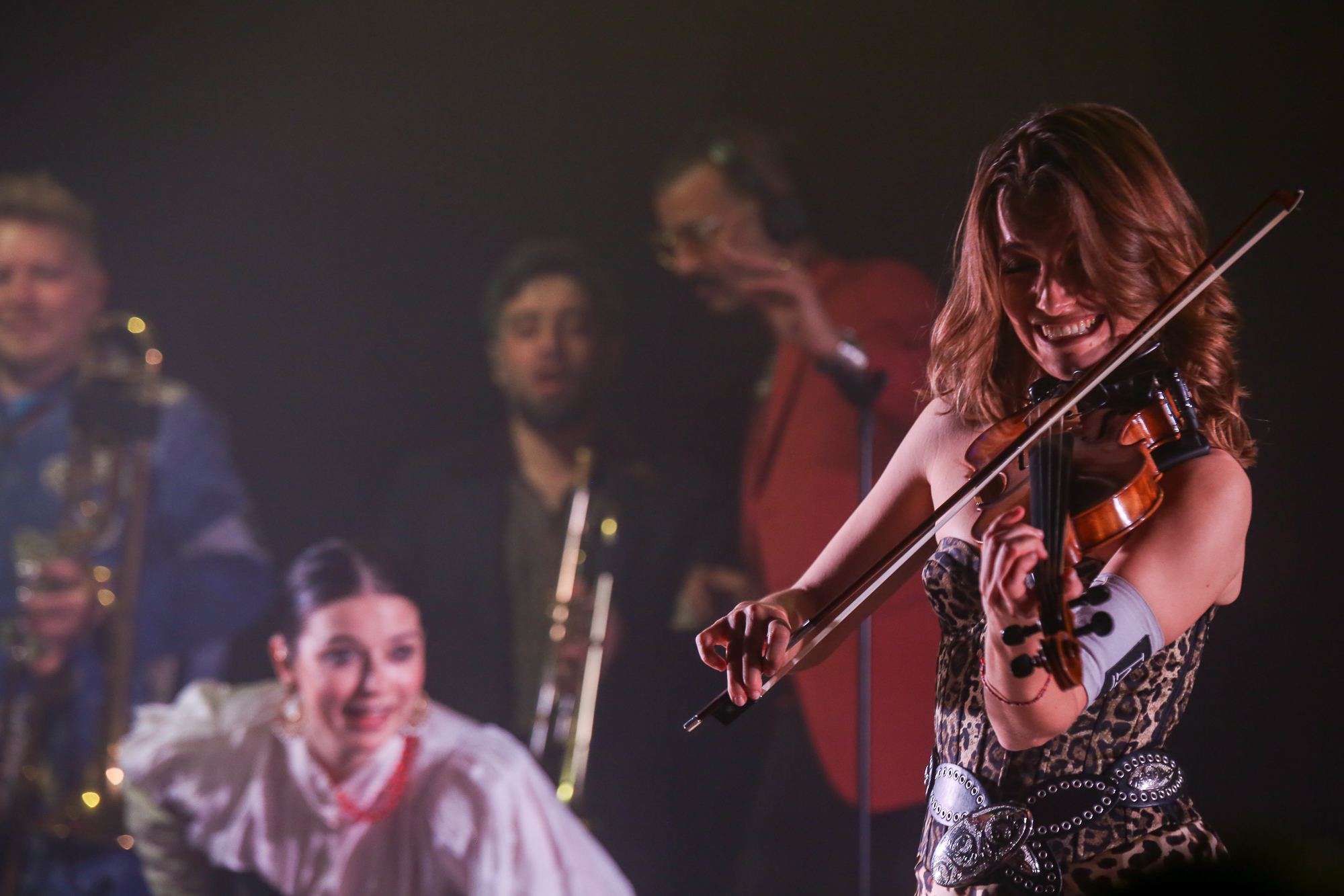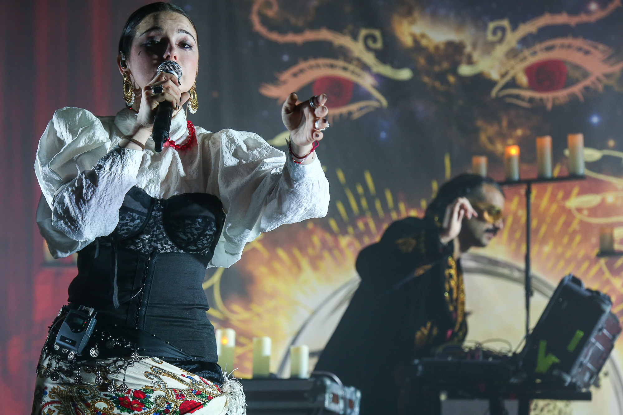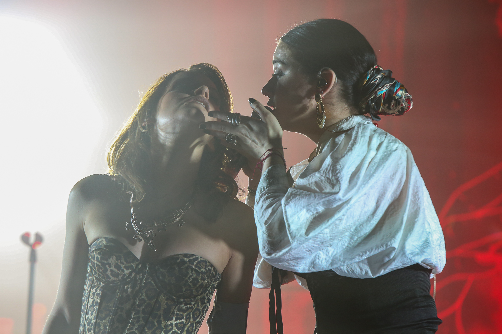 Le violon introduit The National Anthem of Kadebostany, hymne de la République du même nom. Cuivres et machines accompagnent ce thème qui nous plonge dans les racines de ce pays imaginaire. Les voix viennent ensuite s’ajouter à une musique entre clubbing et musiques traditionnelles. Et quelles voix ! Incarnées par la brune Vambra et la blonde Gabriella Laberge, nous assistons toute la soirée à un hallucinant ping-pong vocal de très haut niveau.