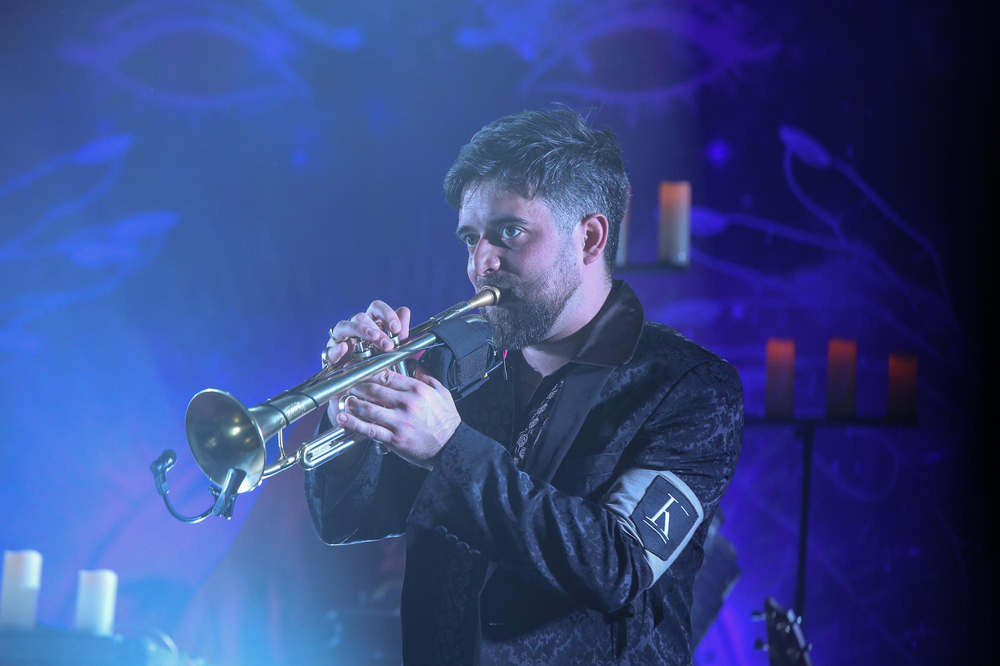 Le plateau est parsemé de bougies (électriques), ce qui donne une aura un peu gothique à la scène de Victoire 2. Ayant visionné le Frankenstein de Guillermo del Toro la veille, on se croirait transporté dans l’univers du réalisateur. La lumière est très faible et les musiciens s’installent dans un format musique de chambre. Vêtus des habits traditionnels de la République de Kadesbostany, l’une d’entre eux s’avance face à nous avec un panneau introduisant le premier acte de l’histoire que nous nous apprêtons à découvrir : WHAT WE DO IN THE SHADOWS.