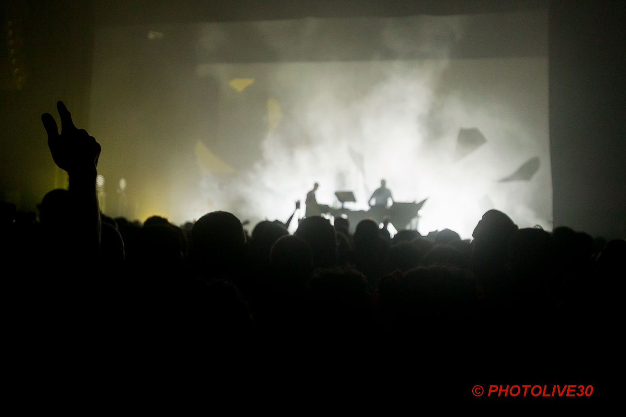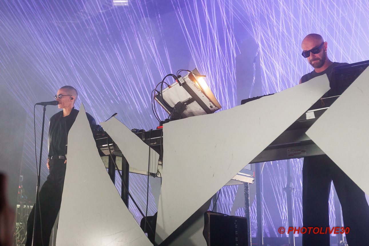 Cette violente montée en puissance va se poursuivre de façon exponentielle : Julia apporte sa touche aux machines aux côtés de Vitalic sur Herztod et c’est tout notre champ visuel qui se déforme. Les lumières font pleinement parties du show et nos yeux nous jouent du tour : il semblerait qu’une tôle ondulée danse derrière le duo. Bluffant !