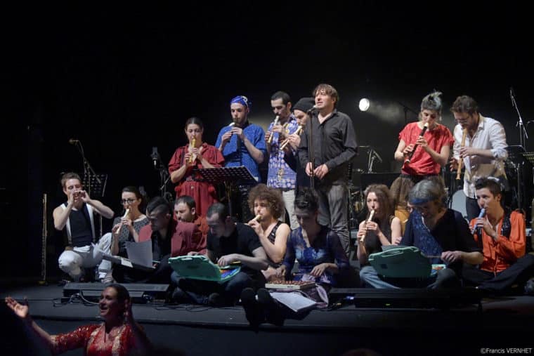 Et comment terminer sans causer des ribambelles de surprises proposées. En affirmant qu’ils allaient « rendre hommage à toutes les flûtes à bec qui se font massacrer chaque année en CM2 », l’orchestre détricote sa configuration pour s’amasser par terre, à l’avant de la salle. L’occasion de sortir les flûtes à bec et quelques xylophones pour accompagner Loïc Lantoine chantonnant » A La Claire Fontaine » pour un retour en enfance salvateur.