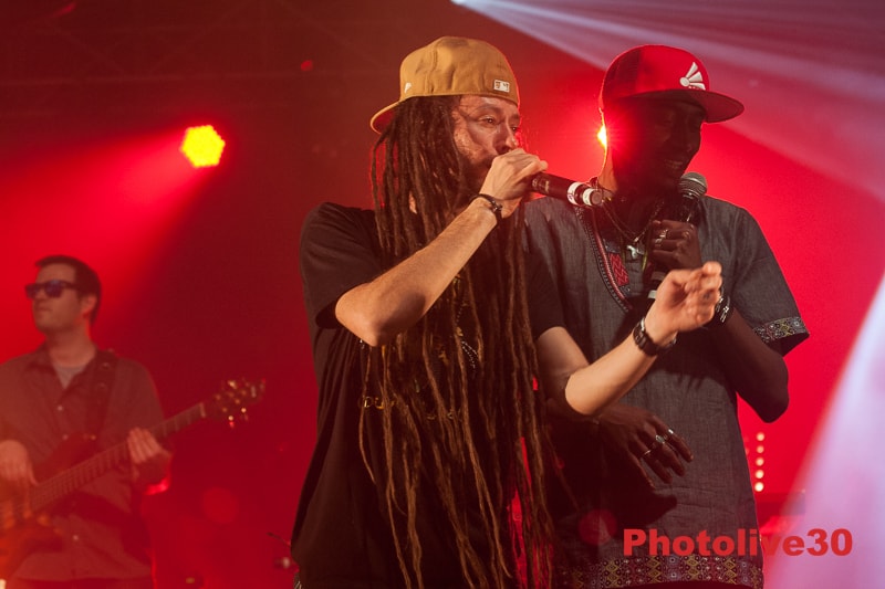 La place alors était ouverte et bien chaude pour Danakil. LA tête d’affiche de cette édition. Absent des scènes depuis plusieurs mois, dans l’optique d’un prochain album, le groupe avait à cœur de montrer au public venu nombreux l’acclamer qu’il était toujours bien présent comme l’un des parangons de la scène reggae française. Au final le set fut propre, du Danakil. Sans inventer de nouvelles choses, on sentait dans l’attitude de Balik, dont c’était l’anniversaire, la joie de remonter sur scène, et de se produire devant 4000 personnes. Natty Jean était de la partie également pour ce show, et les deux hommes bien suivis de leurs musiciens ont gratifié le public de quelques nouveaux titres qui ont su tenir éveillé les festivaliers. Bien entendu les anciens titres ne furent pas en reste non plus, même si quelques classiques ont manqué à nos oreilles chargées de musique depuis deux jours. Mon île ou Marley furent des grands moments de cette soirée, et du festival.