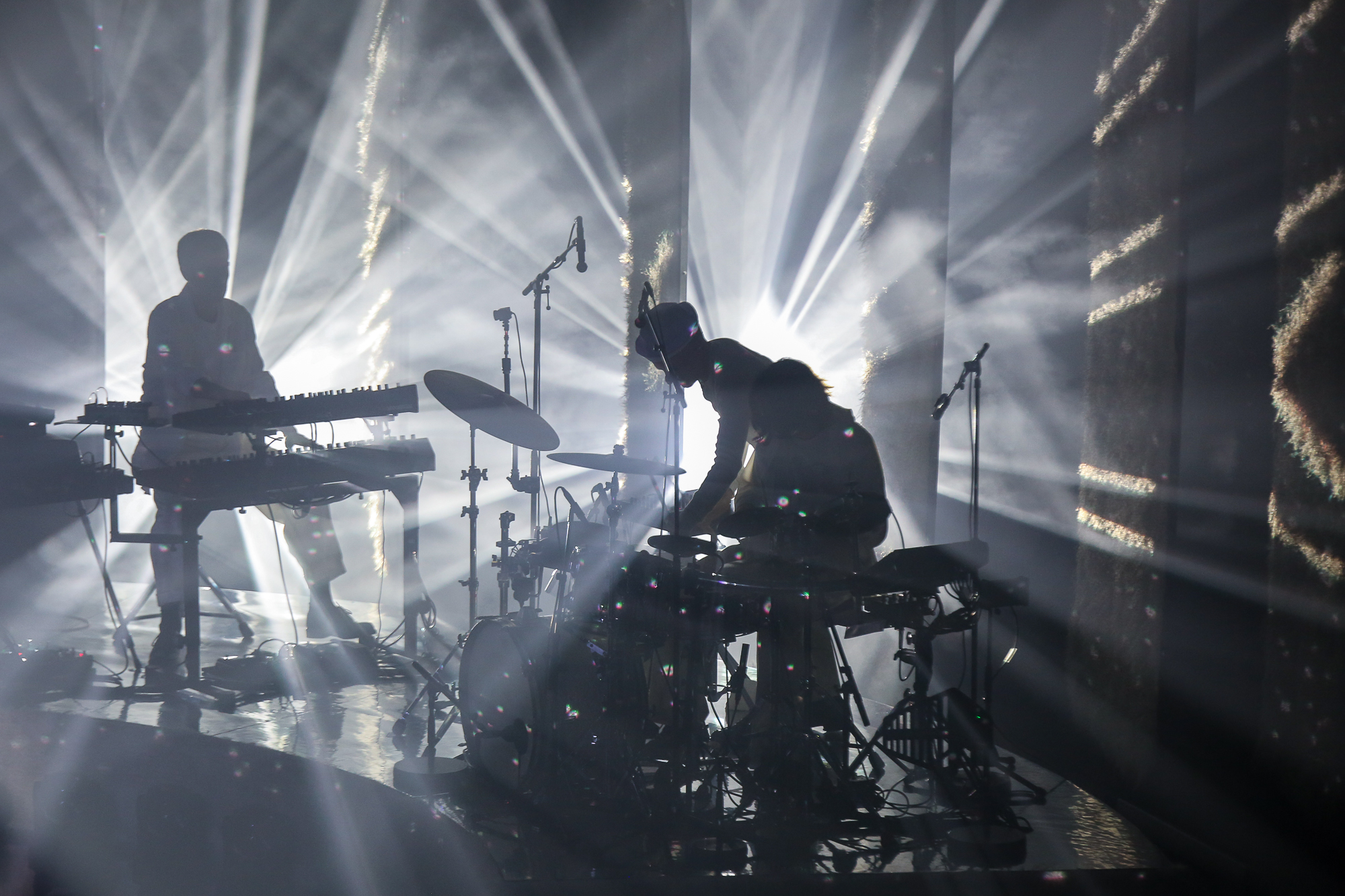 Nous sommes tous ébahis par ce projet mixant avec finesse énergie club et chant baroque sous un habillage arty parfois déconcertant. Le contraste entre ce batteur barbu et chevelu, déchainé sur ses fûts, et ce chanteur à la voix haut perché, crée un spectacle hypnotisant et dansant totalement inclassable. Nous acclamons avec ferveur ce néo-gourou futuriste qui nous arrose de lasers puissants tout en scandant un Ave Maria puissant qui se termine simplement par la phrase I love Men.
