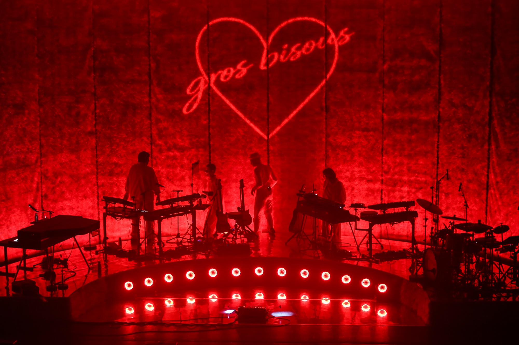 Sébastien revient une dernière fois sur scène, avec sa guitare, pour interpréter Fantino avec beaucoup de douceur. C’est beau et touchant, le morceau parfait pour se dire adieu. Le set se conclut avec un gros Bisou sur fond rouge qui apparait en fond de scène.