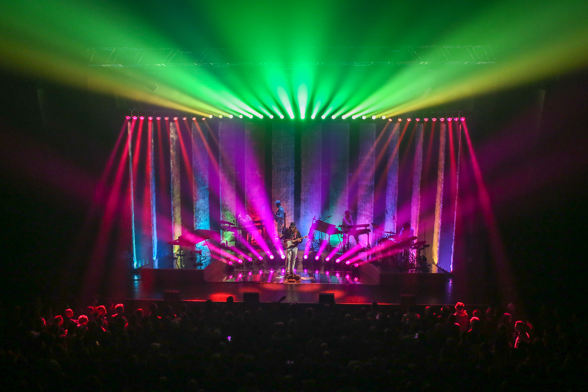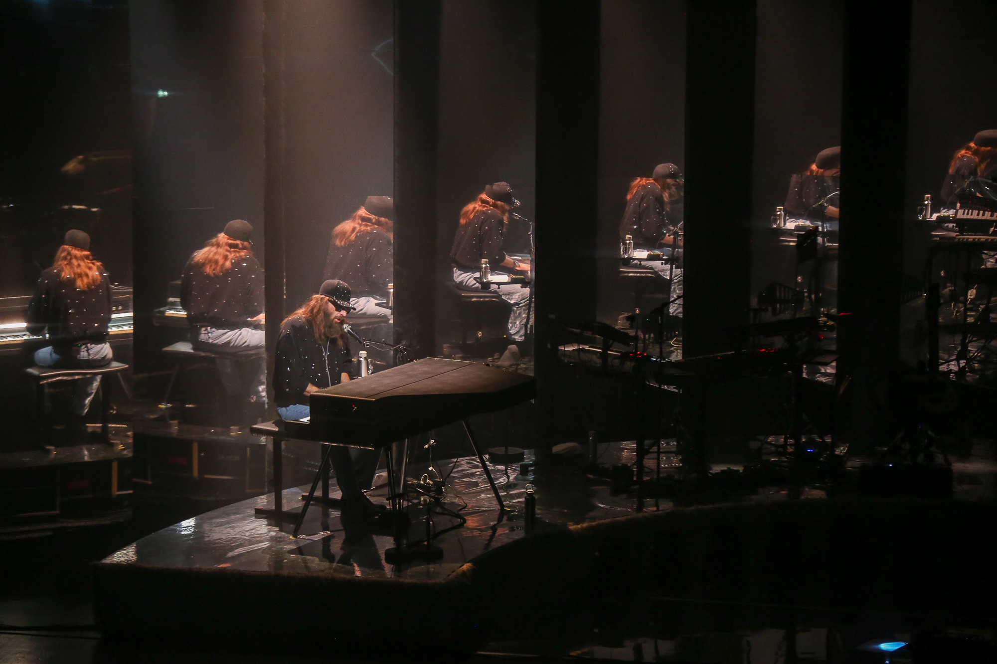La scénographie est spectaculaire créant une atmosphère tantôt psychédélique, tantôt onirique en fonction des morceaux joués. Finalement, assez peu de titres du dernier album sont joués mais on prend notre pied sur Naïf de cœur, où , seul au piano, Sébastien Tellier se retrouve multiplié à l’infini dans les miroirs qui l’entourent. A noter également Thrill of the Night dans une ambiance psychédélique multicolore.