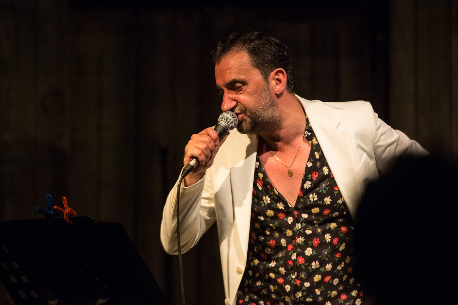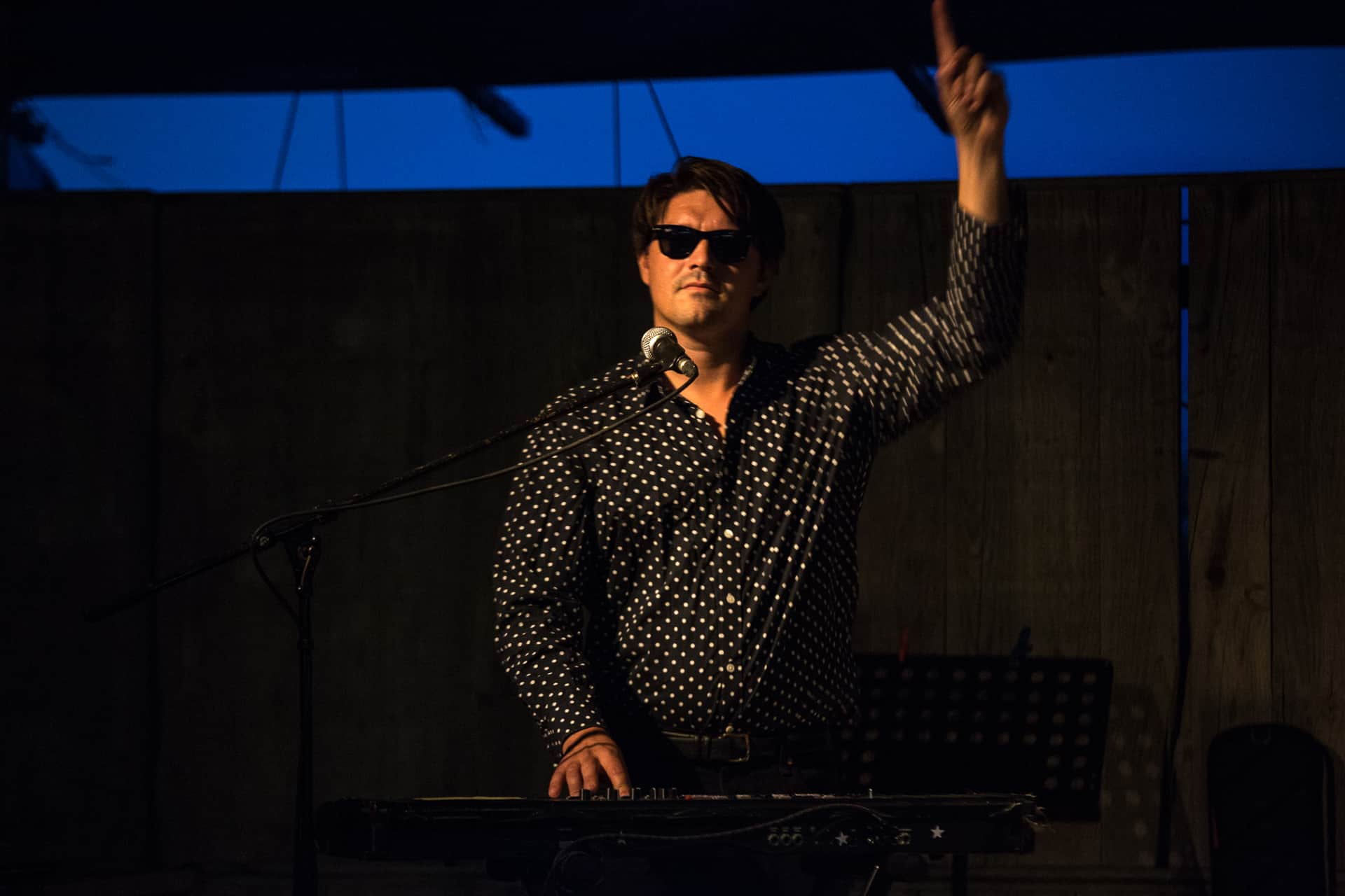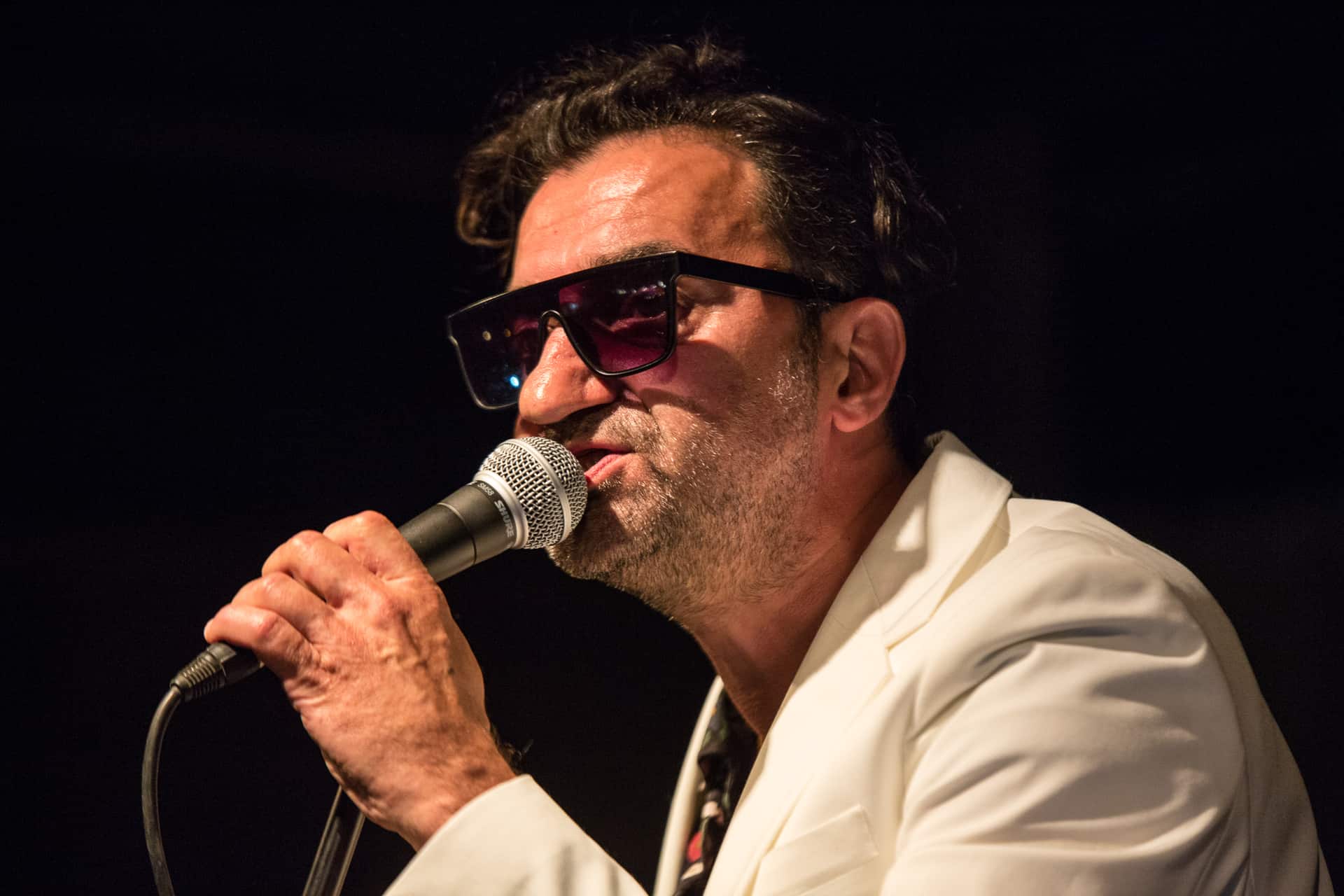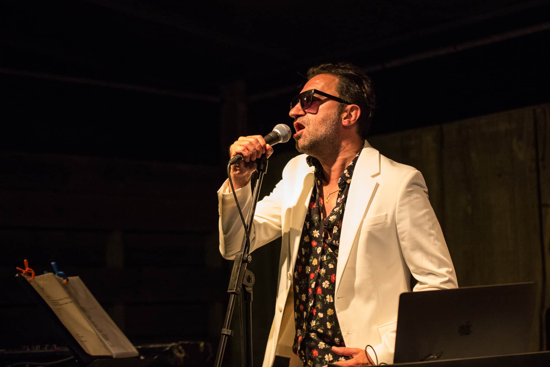 C’est son ami Alex Rossi qui prend la suite (après une apparition dans le concert précédent en compagnie de Nikki Demiller). Car c’est bien en Italie que nous partons maintenant avec ce chanteur qui a composé aussi bien pour Alex Bauer que Dick Rivers avant de rencontrer Romain Guerret (merci Myspace). Une rencontre qui l’a décidé à poursuivre la route dans sa langue… paternelle. Et c’est avec son ultima canzone que le succès arrive et qu’Alex Rossi ambiance la scène de la Ferme marine. Mais pas que, le rital est sûr de son coup et enchaine les titres de son « testament italien », l’album Domani è un’altra notte sorti en 2019 chez Kwaidan Records. Nous sommes heureux d’entendre sa chanson Tutto va bene quando facciamo l’amore qui a été remixée , entre autres, par Yuksek. La soirée se termine dans la joie et le sourire aux lèvres avec cette phrase d’Alex Rossi en tête « je suis à la fois solaire et mélancolique » que nous garderons comme un mantra pour le reste de l’été.