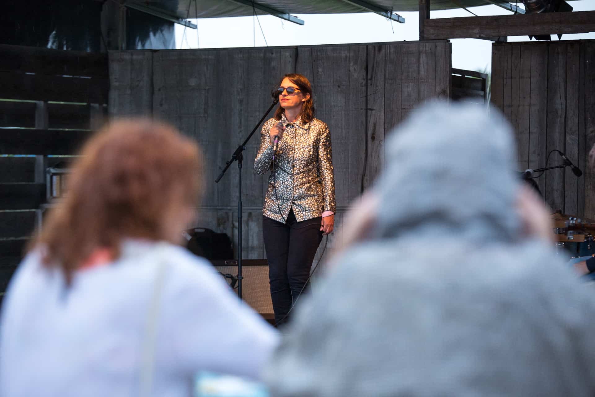 Qui dit festival, dit nouvelle série de concerts. Nous sommes donc de retour le lendemain pour une soirée que l’on pourrait décrire comme étant aux antipodes de la précédente. Et cela commence par la météo qui nous propose un temps pluvieux et frais qui n’aura finalement pas la peau des concerts mais qui aura démotivé une grande partie du public censé être présent. Nous commençons avec quelques morceaux de Vanessa Chassaigne dans une ambiance très fraiche pour la saison. Chansons d’amour intimistes sont offertes au courageux public qui a décidé de braver les éléments (bon oui, on reste des sudistes).